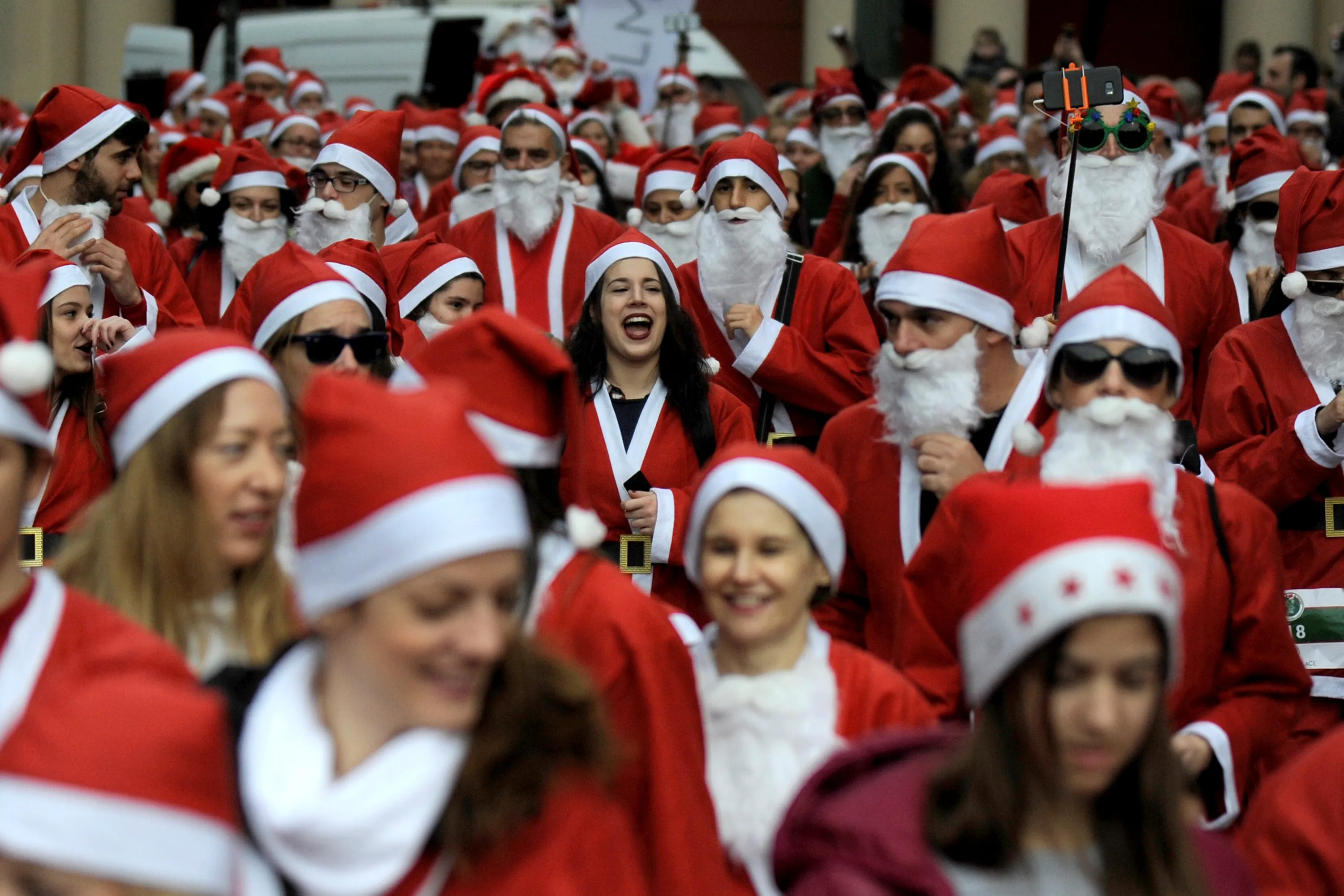 People dressed in Santa costumes take part in the Santa Run Athens, in Athens, Greece, December 4, 2016. (Photo by Michalis Karagiannis/Reuters)