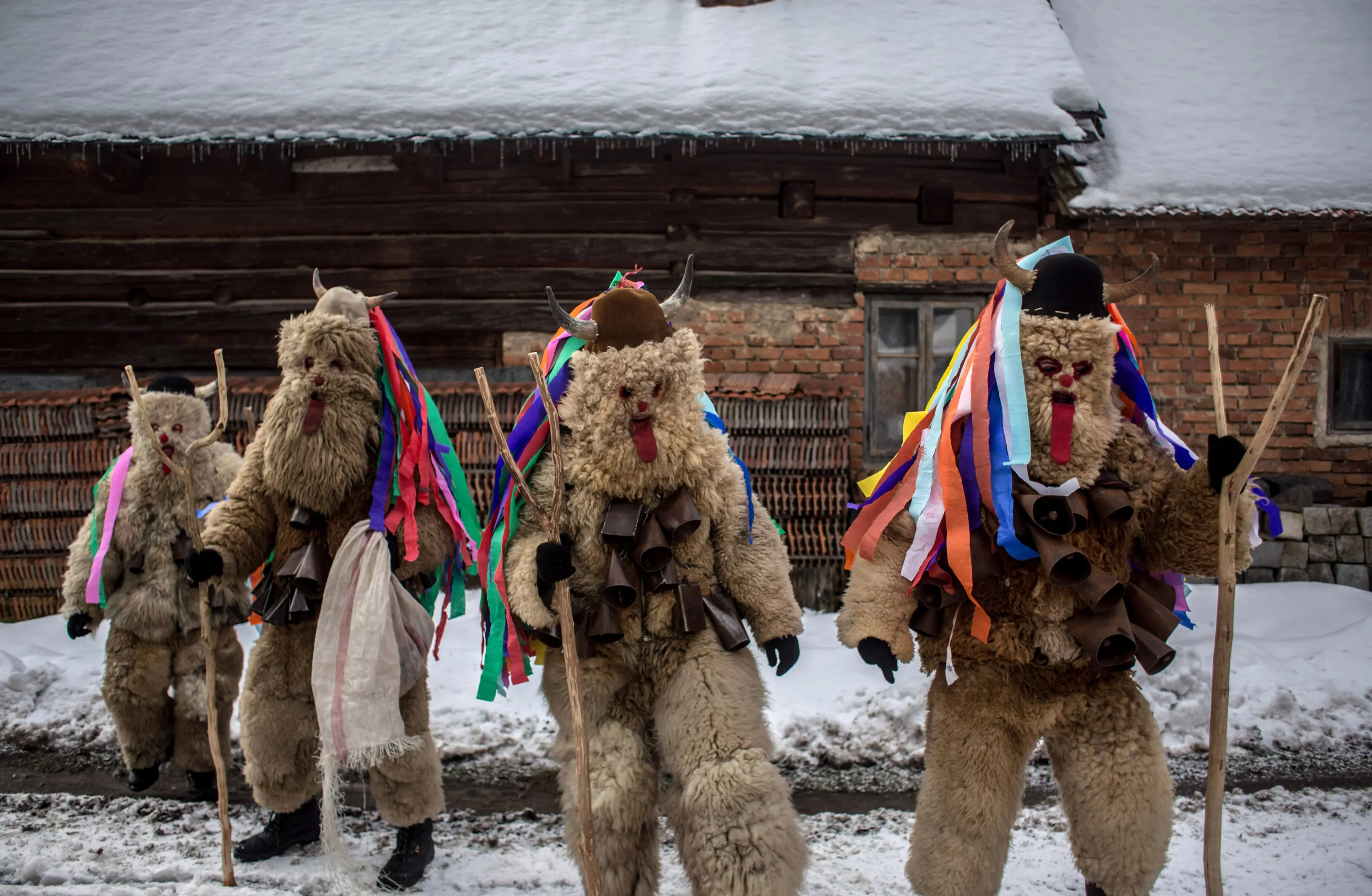 Participants dressed in traditional devil costumes walk from house to house during the traditional St. Nicholas parade on December 3, 2016 in village of Francova Lhota, Czech Republic. (Photo by Matej Divizna/Getty Images)