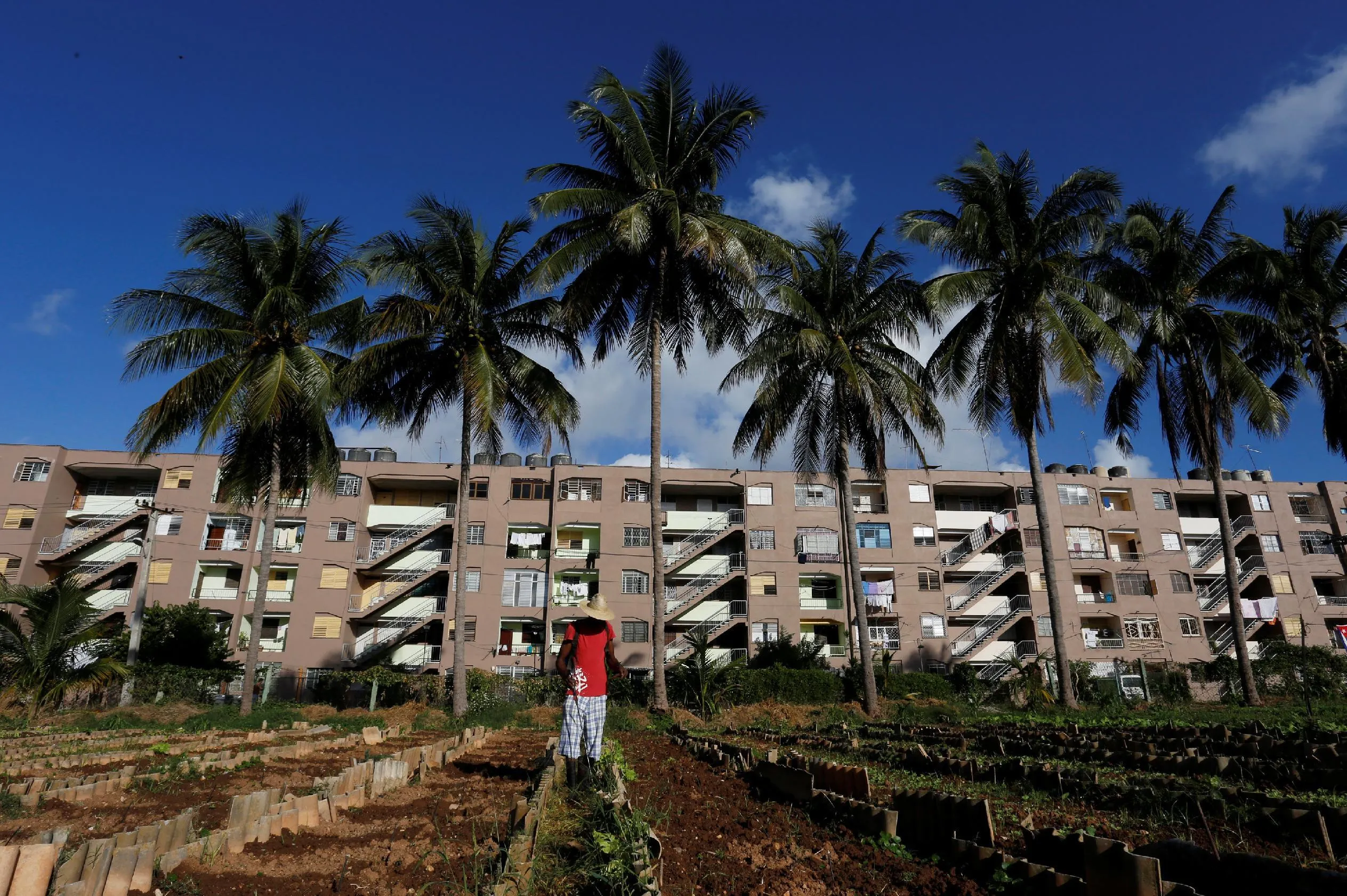 A man works on crops planted in front of an apartment building in Havana, Cuba, December 3, 2016. (Photo by Reuters/Stringer)