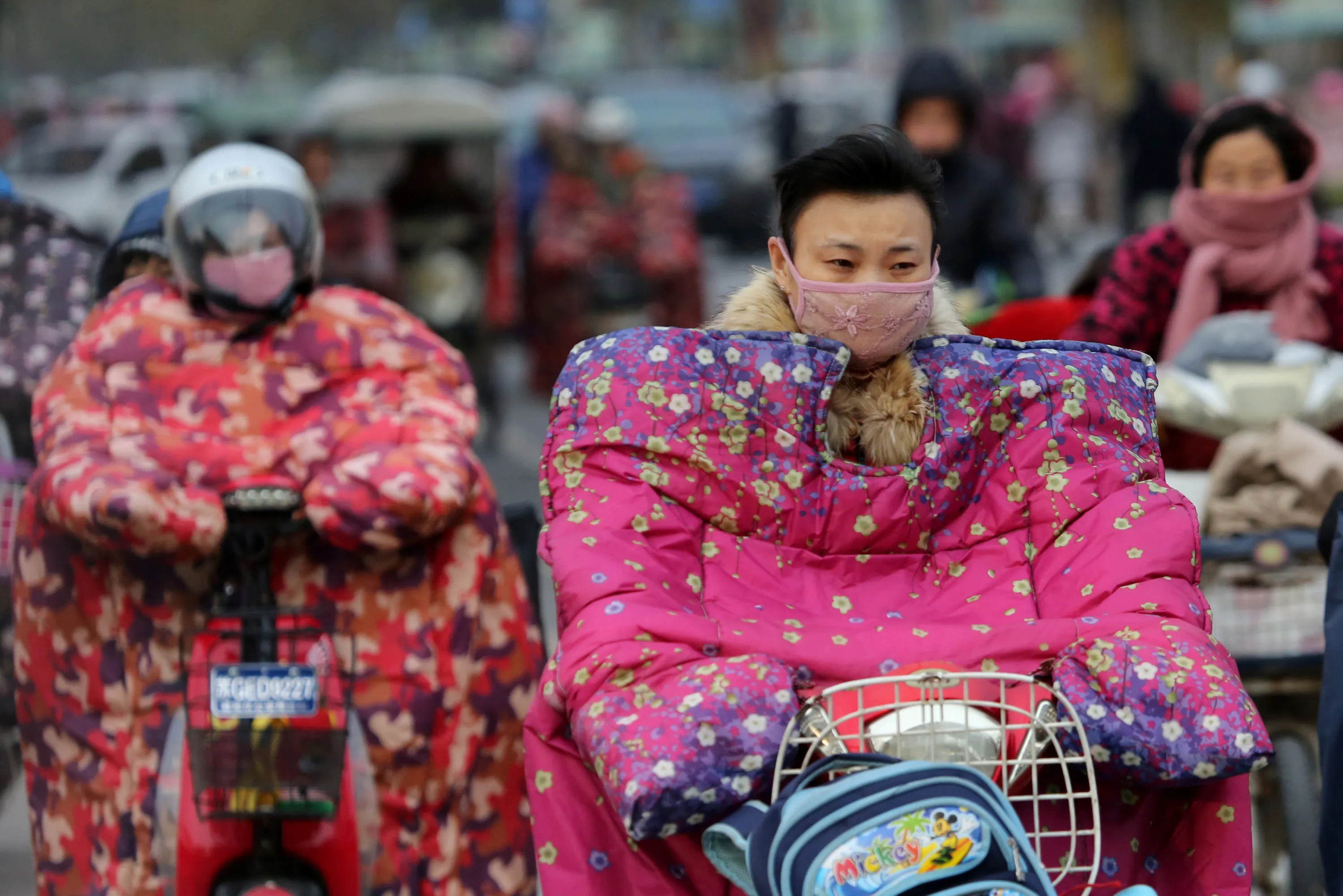 People wear special jackets made for riders to keep out the wind during a cold day in Lianyungang, Jiangsu province, November 23, 2016. (Photo by Reuters/Stringer)