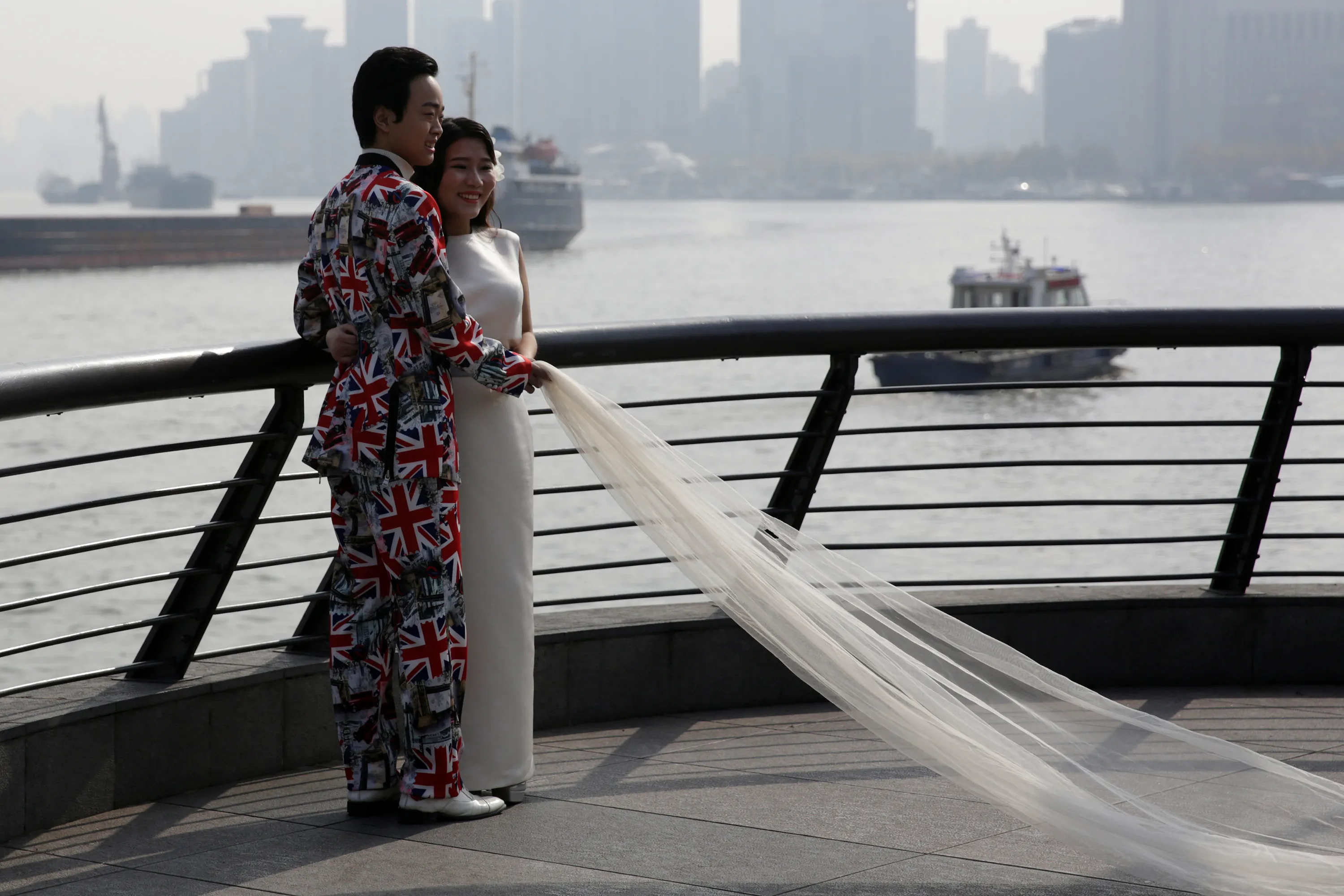 A couple prepares their wedding photo session in Shanghai, China December 5, 2016. (Photo by Aly Song/Reuters)