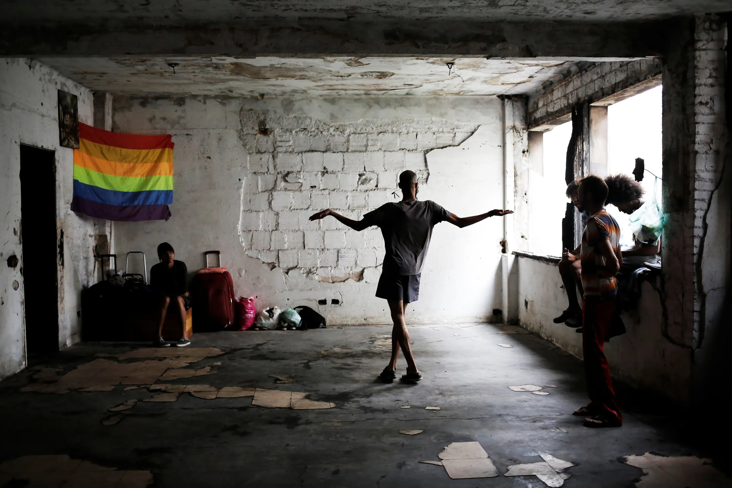 Members of lesbian, gay, bisexual and transgender (LGBT) community, that have been invited to live in a building that the roofless movement has occupied, spend time in the building, in downtown Sao Paulo, Brazil, November 3, 2016. (Photo by Nacho Doce/Reuters)
