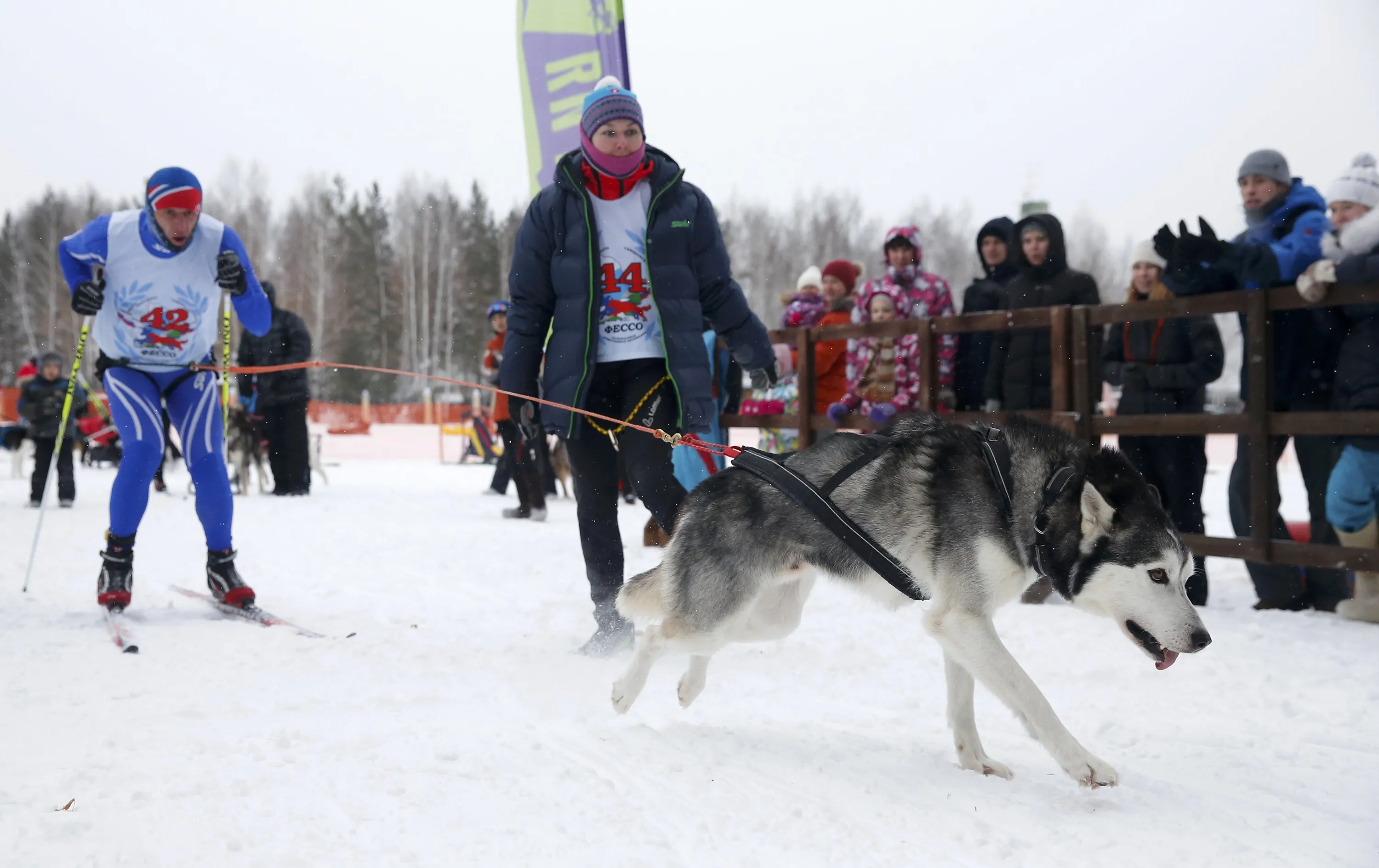 A skier is pulled by a dog during a sled and skijoring race in the village of Kadnikovo outside Yekaterinburg, Russia, December 10, 2016. (Photo by Maxim Shemetov/Reuters)