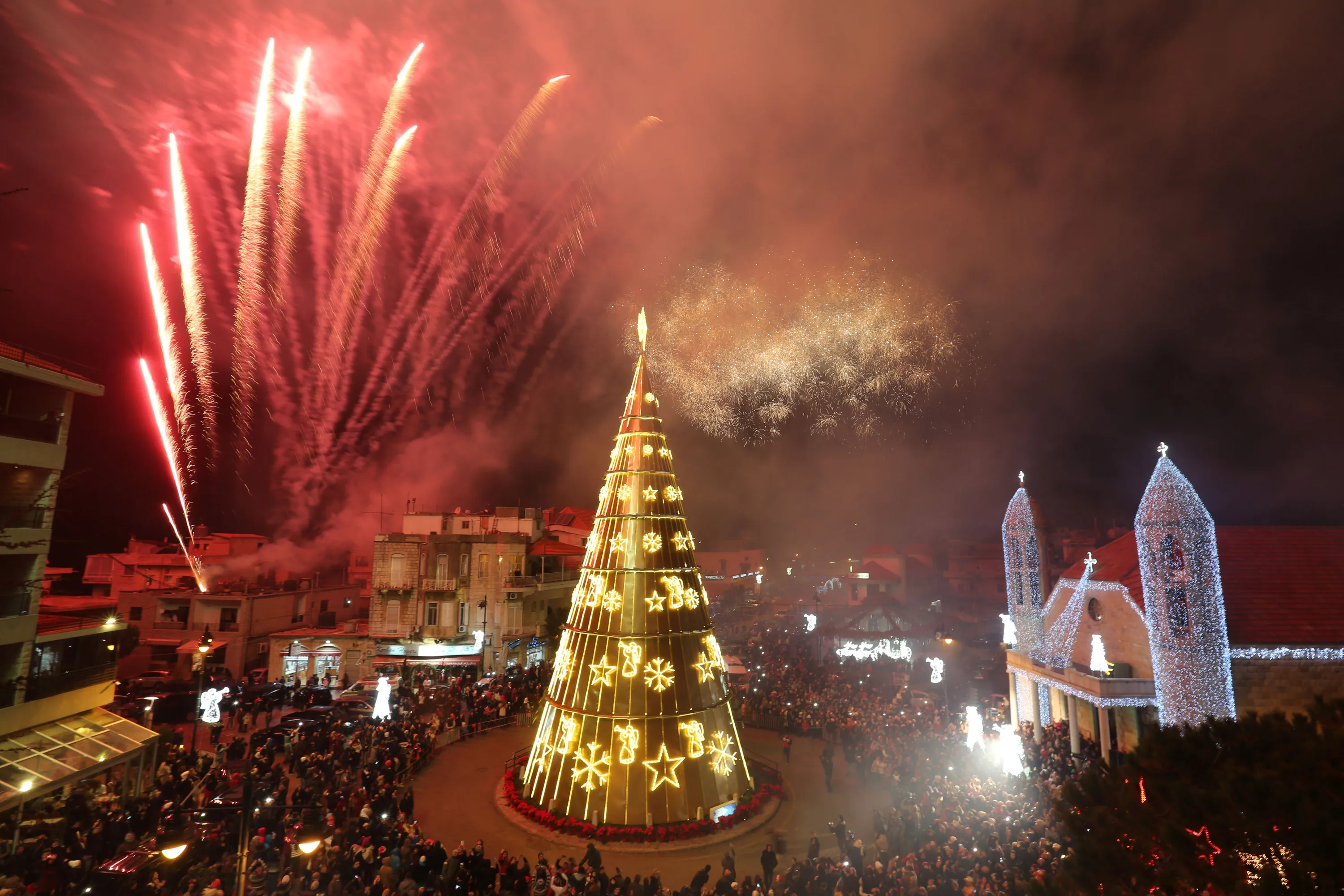Fireworks are set off as a Christmas tree is illuminated in Dhour Shweir, Mount Lebanon, December 10, 2016. (Photo by Aziz Taher/Reuters)