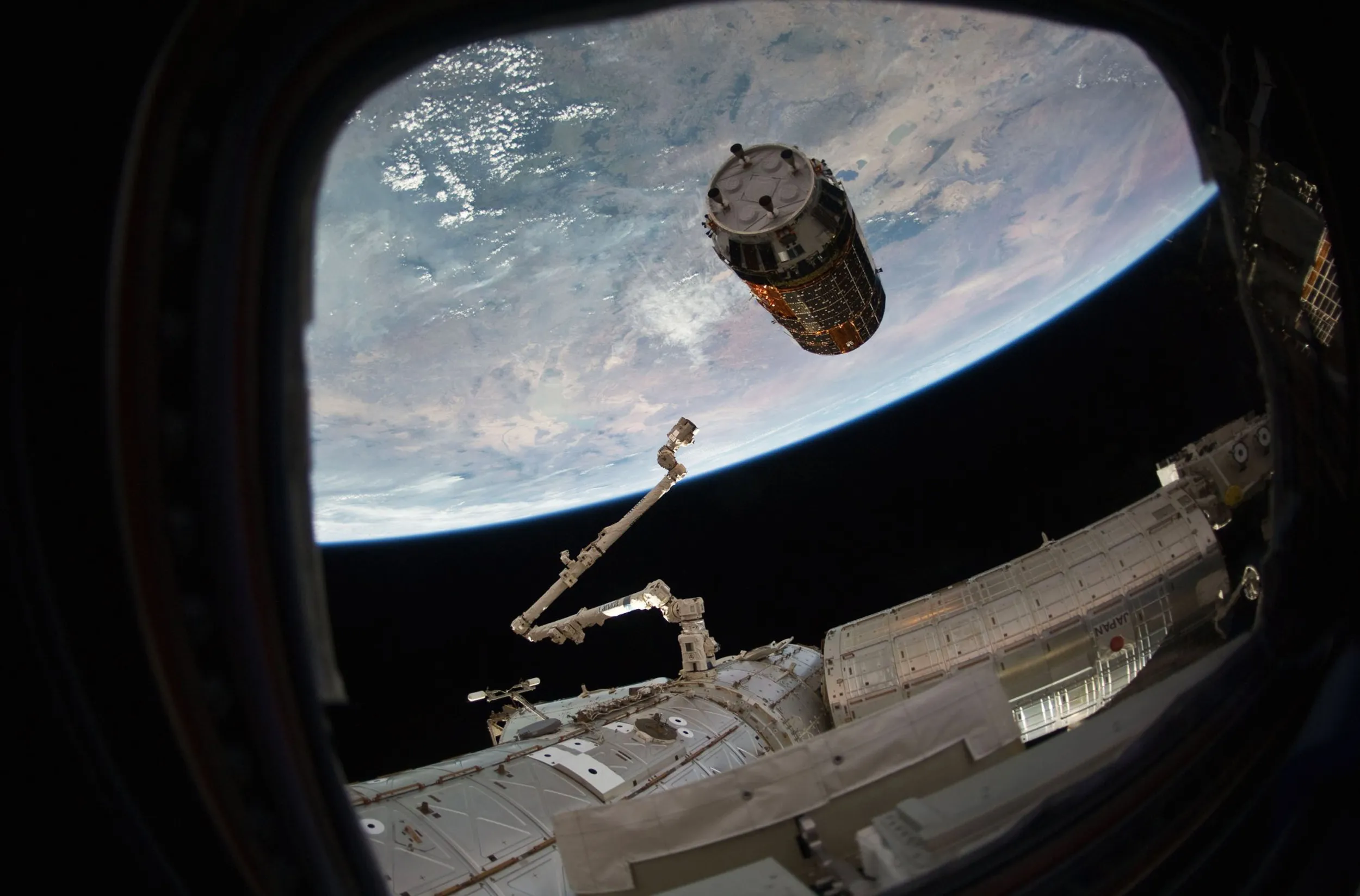 This photo provided by NASA TV shows a Japanese cargo ship before it arrives with Christmas gifts to the International Space Station on Tuesday, December 13, 2016. The capsule – called Kounotori, or white stork – contains nearly 5 tons of food, water, batteries and other supplies. NASA said there also are Christmas presents for the two Americans, three Russians and one Frenchman on board. (Photo by NASA TV via AP Photo)