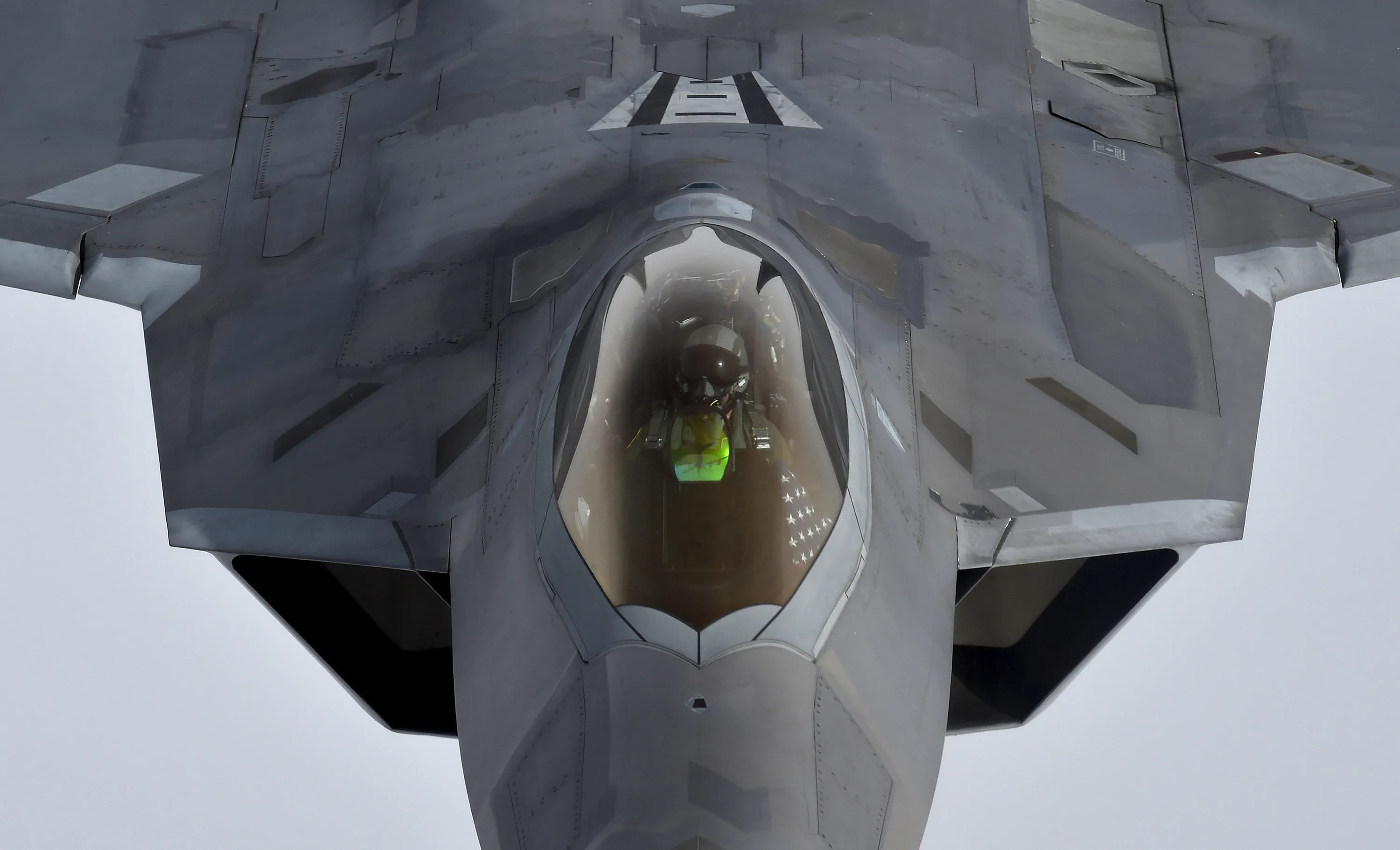 A pilot looks up from a U.S. F-22 Raptor fighter as it prepares to refuel mid-air with a KC-135 refuelling plane during a flight to Britain from Mihail Kogalniceanu air base in Romania, April 25, 2016. (Photo by Toby Melville/Reuters)
