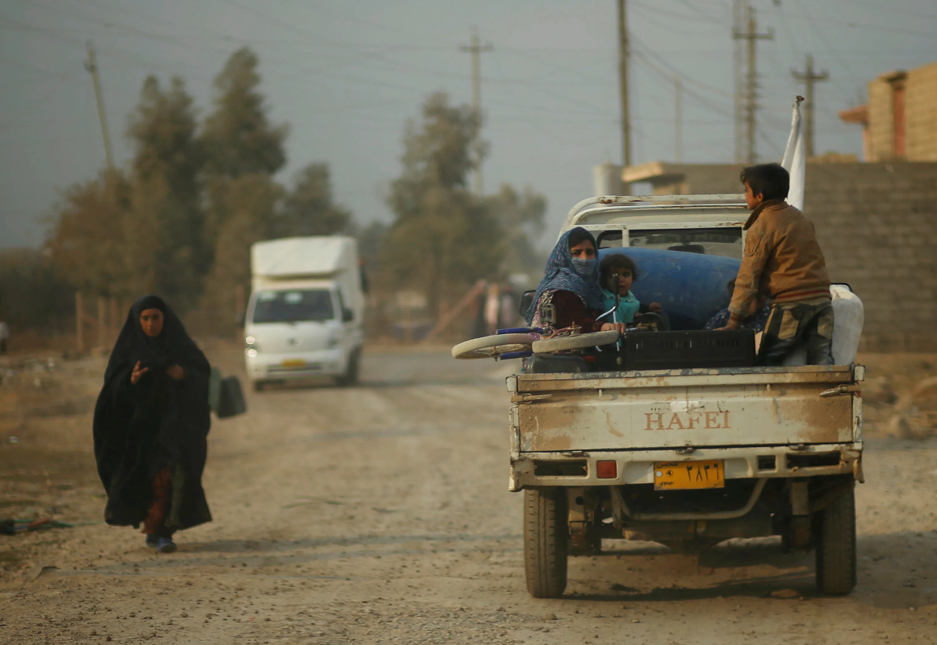 An Iraqi family sits in the back of a pickup truck in Al-Zohor district, east of Mosul, Iraq, December 13, 2016. (Photo by Ahmed Jadallah/Reuters)