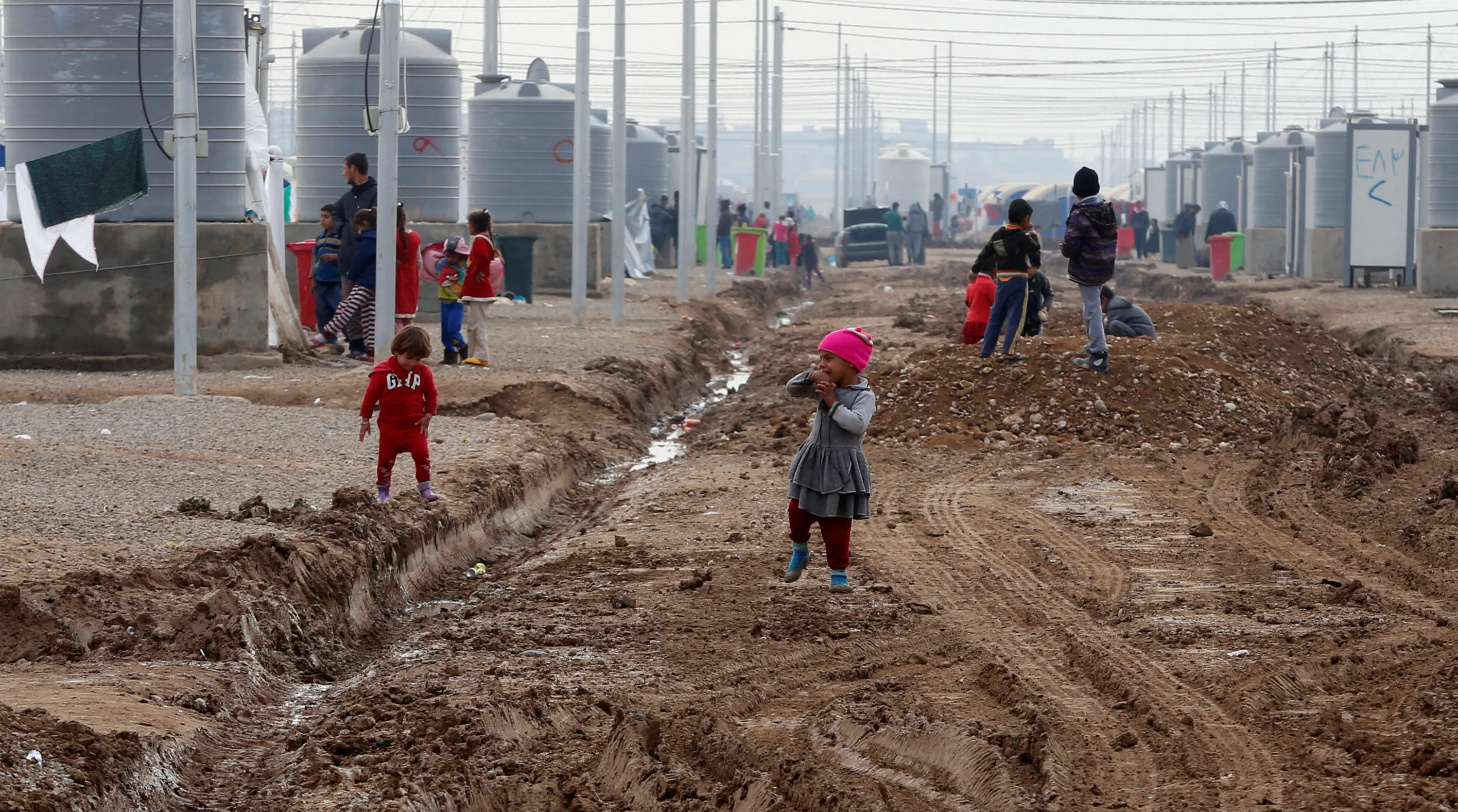 Displaced Iraqi children, who fled the Islamic State stronghold of Mosul, gather at Khazer camp, Iraq December 13, 2016. (Photo by Ammar Awad/Reuters)