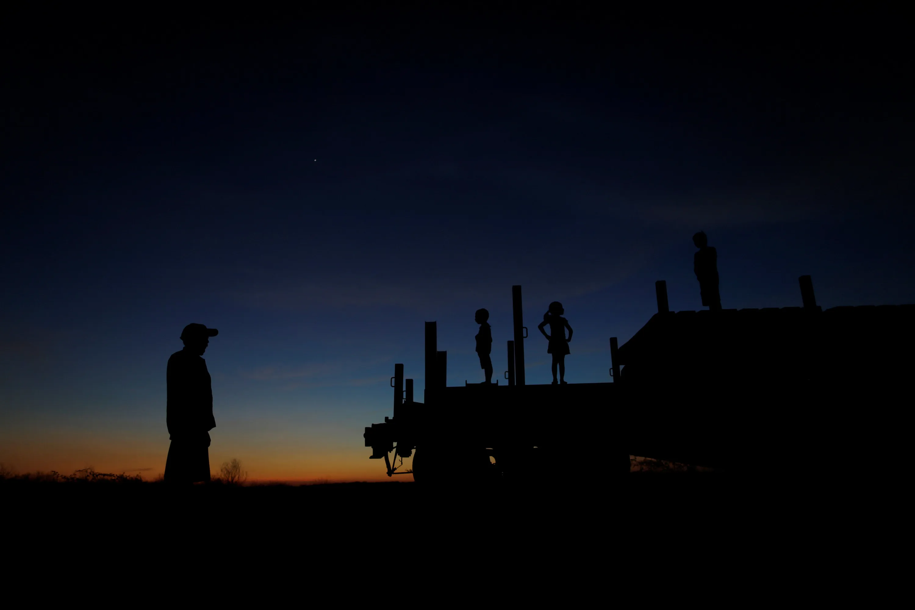 Raimundo da Silva stands nearby as his sons Daniel da Silva, Ariana da Silva and Raniel da Silva play on top of a train wagon near the city of Salgueiro, Pernambuco state, northeastern Brazil, October 26, 2016. (Photo by Ueslei Marcelino/Reuters)