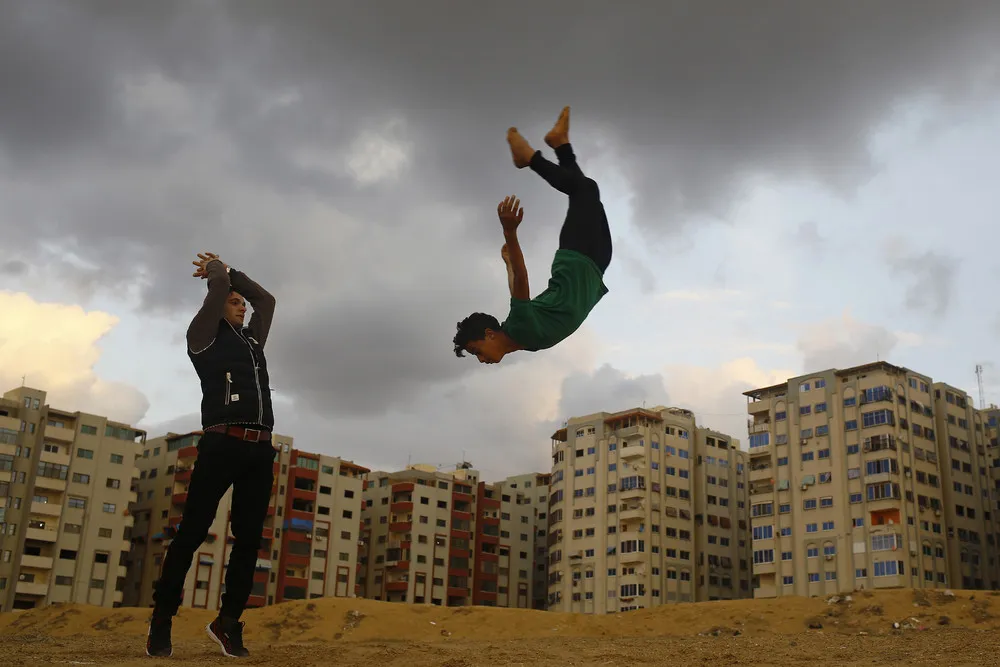 Palestinian youths from Gaza's Free Parkour team, practice their Parkour skills in Gaza City on December 16, 2016. (Photo by Mohammed Abed/AFP Photo)