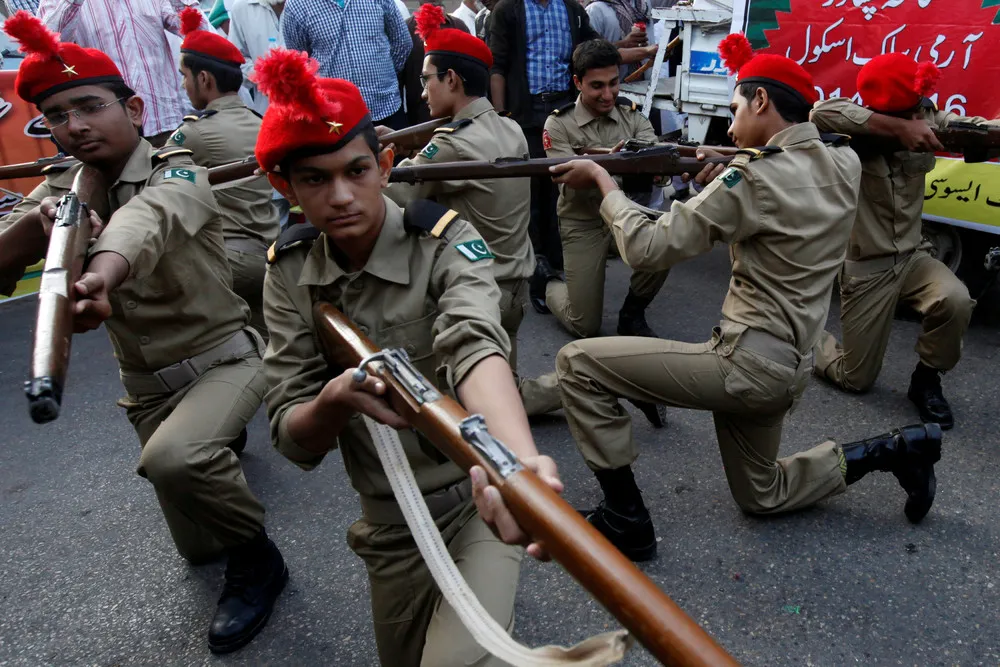 School children in uniform perform, in commemoration of the victims of an attack on the Army Public School in 2014, during a demonstration in Karachi, Pakistan, December 16, 2016. (Photo by Akhtar Soomro/Reuters)
