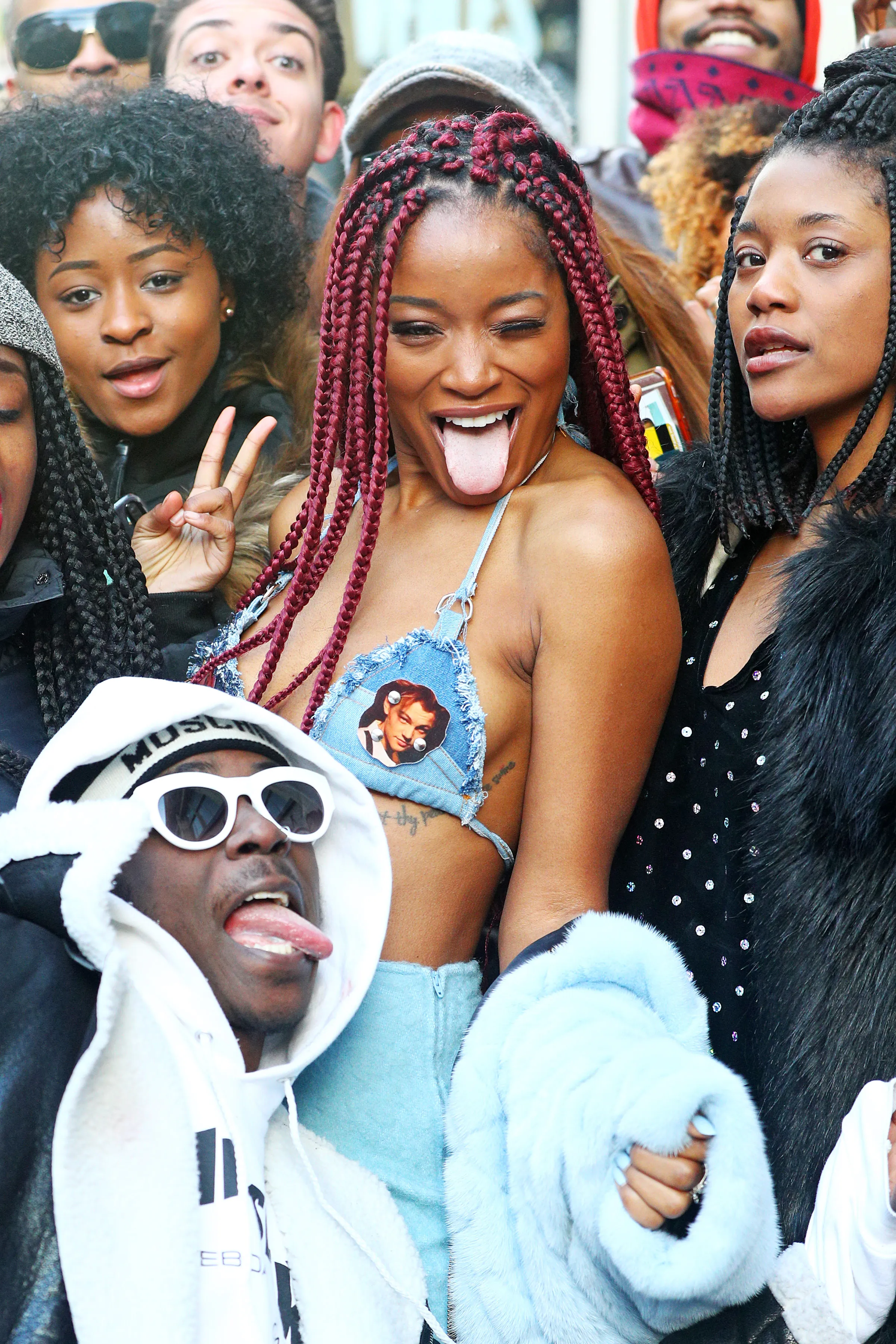 Kiki Palmer wears a blue denim bikini top and mini skirt in freezing cold New York City weather as she arrives to the V-Files store in Soho on December 16, 2016. (Photo by Splash News and Pictures)