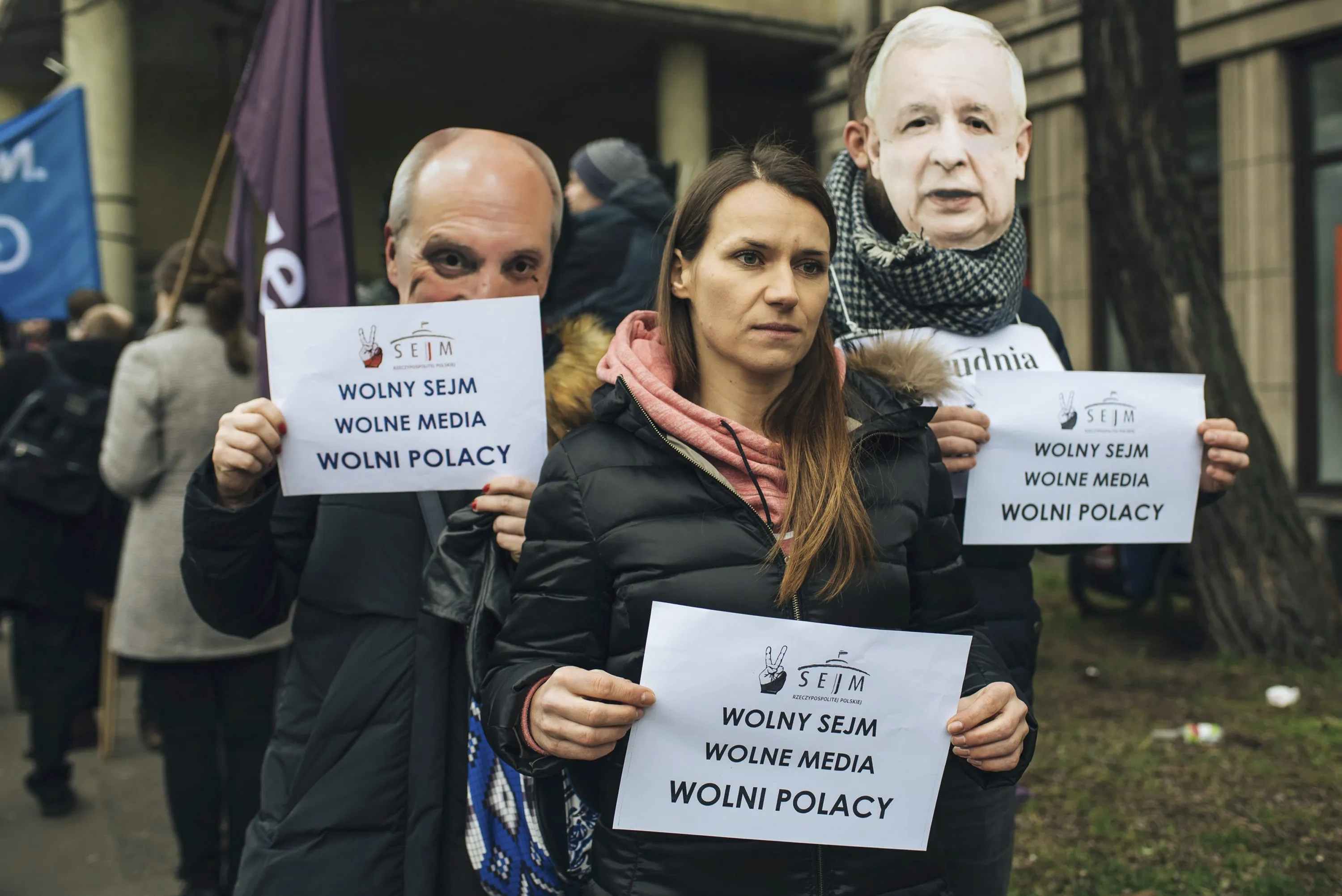 Demonstrators hold banners “Free Parliamnent, Free Media, Free Poles” during a protest in Gdansk, Poland December 17, 2016. (Photo by Bartosz Banka/Reuters/Agencja Gazeta)