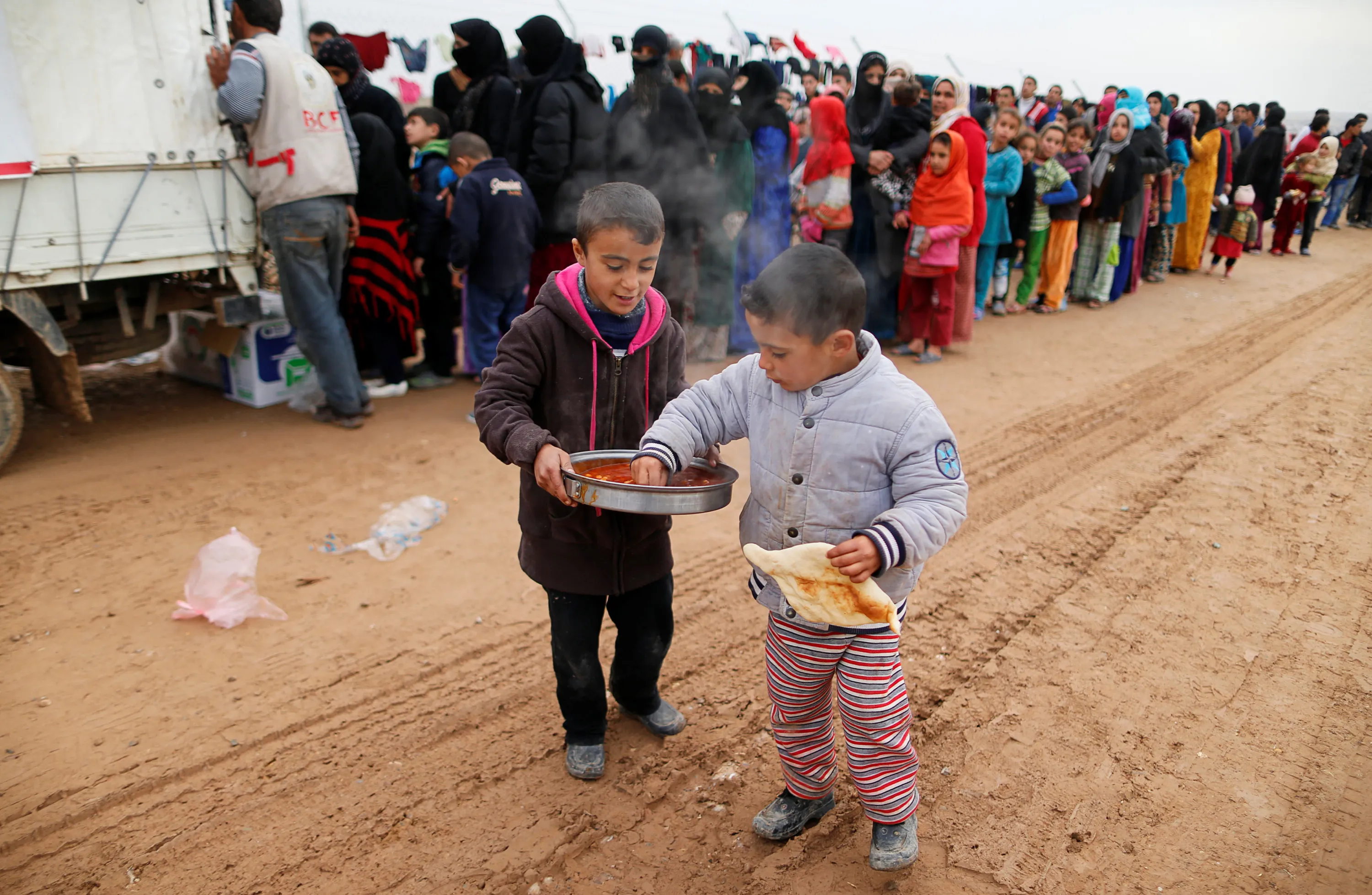 Boys who fled the Islamic State stronghold of Mosul, receive food at a refugee camp, Iraq,December 18, 2016. (Photo by Ammar Awad/Reuters)