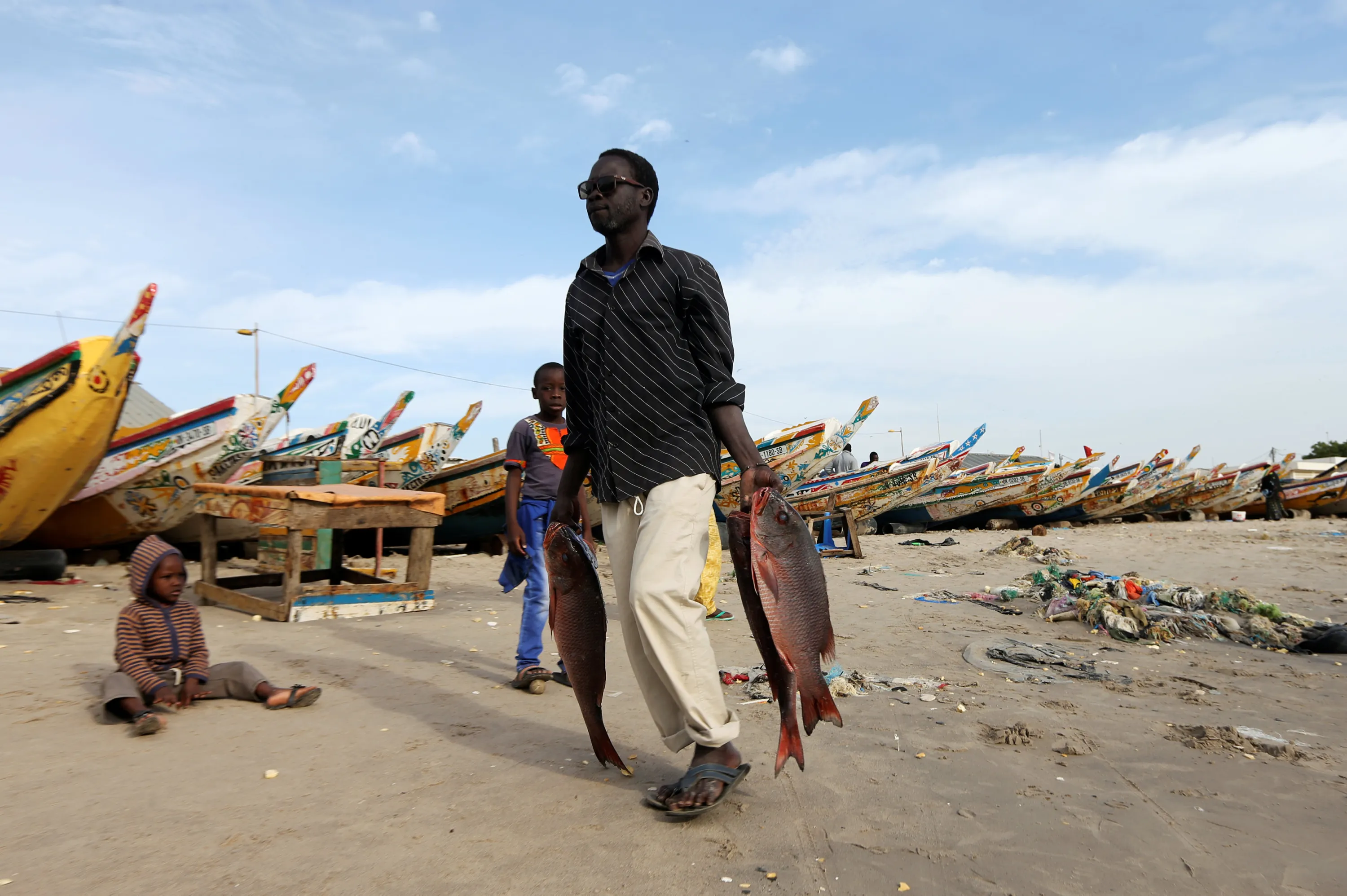 A man carries fish in his hands at the fish market opposite Dakar boat island, Senegal December 18, 2016. (Photo by Afolabi Sotunde/Reuters)