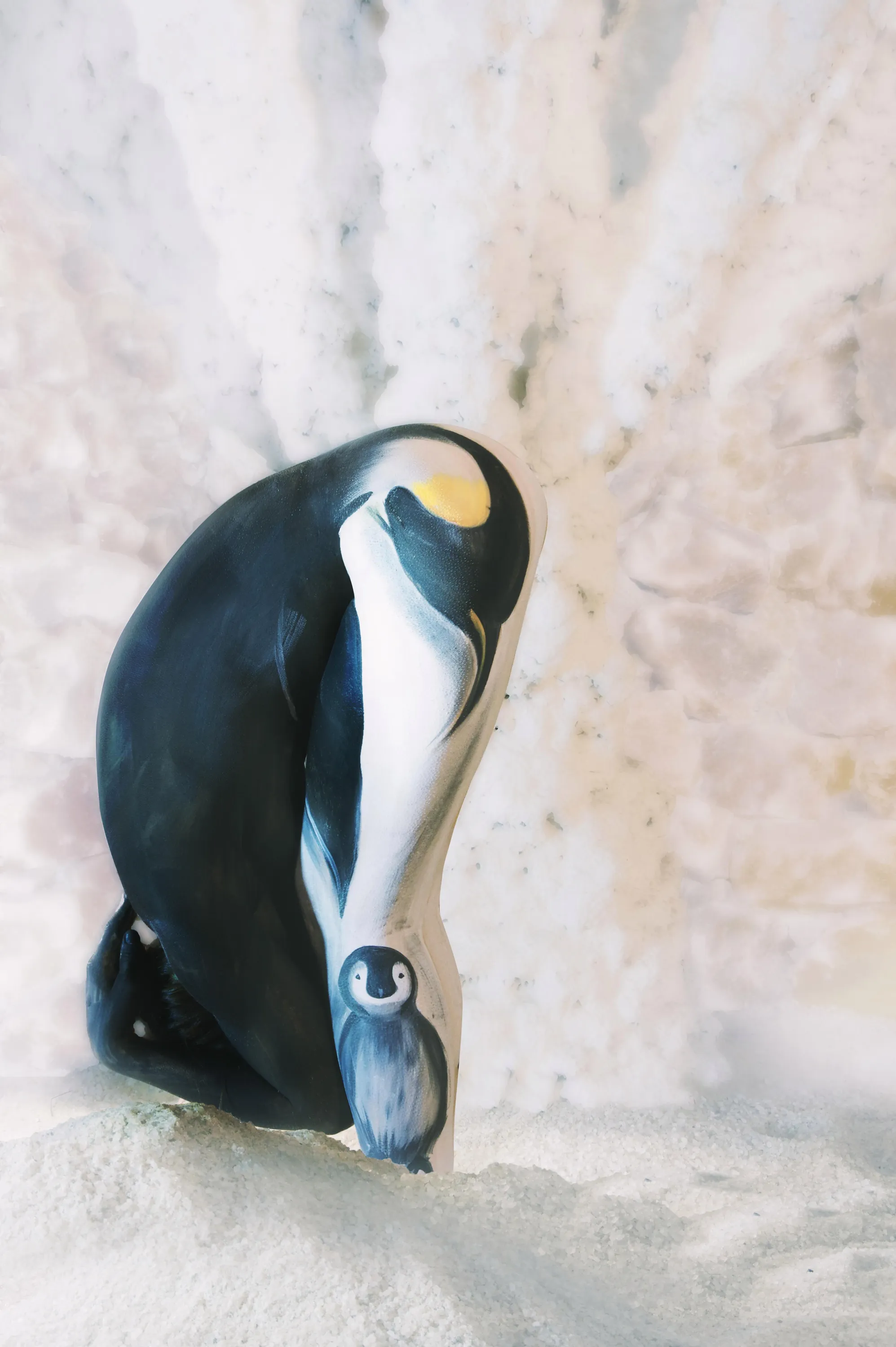 Artist Gesine Marwedel transforms a model into a mother penguin with a baby chick, Dortmund, Germany, October, 2016. (Photo by Gesine Marwedel/Barcroft Images)