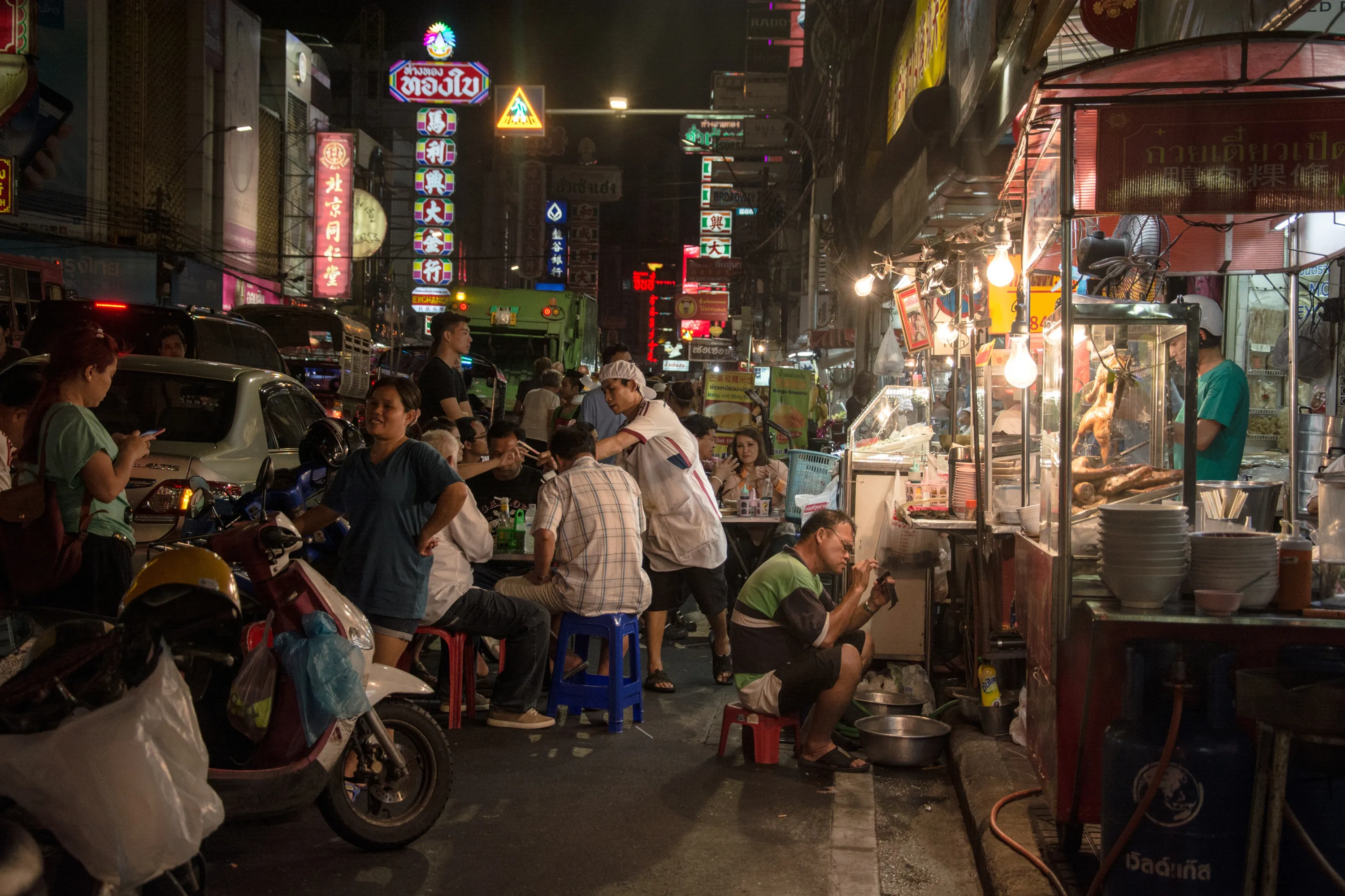 “Evening chaos in Bangkok’s Chinatown, where food vendors fill the pavements and customers compete with traffic for road space. The food is worth risking your life for!”. (Photo by Chloe Beale/Guardian Witness)