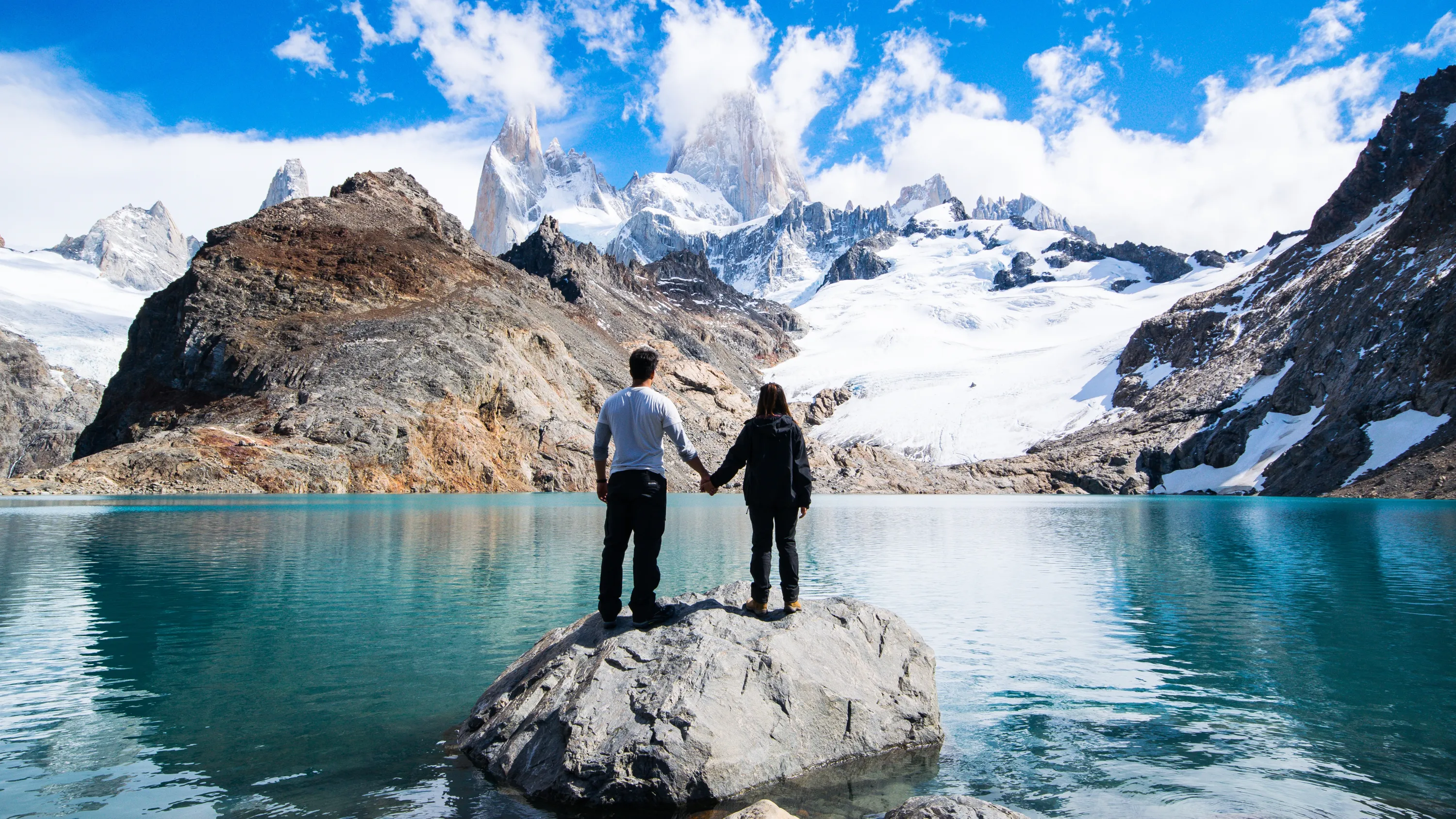 “My wife and I looking towards Mount Fitz Roy at Laguna de los Tres at the end of a five-hour trek in the Patagonian wilderness. On arriving at the highest point of the path, we were rewarded with unforgettable views of the majestic “smoking mountain”. We spotted this boulder in the azure glacier melt water and had to jump on to it for a photo”. (Photo by Tariq Benson/Guardian Witness)