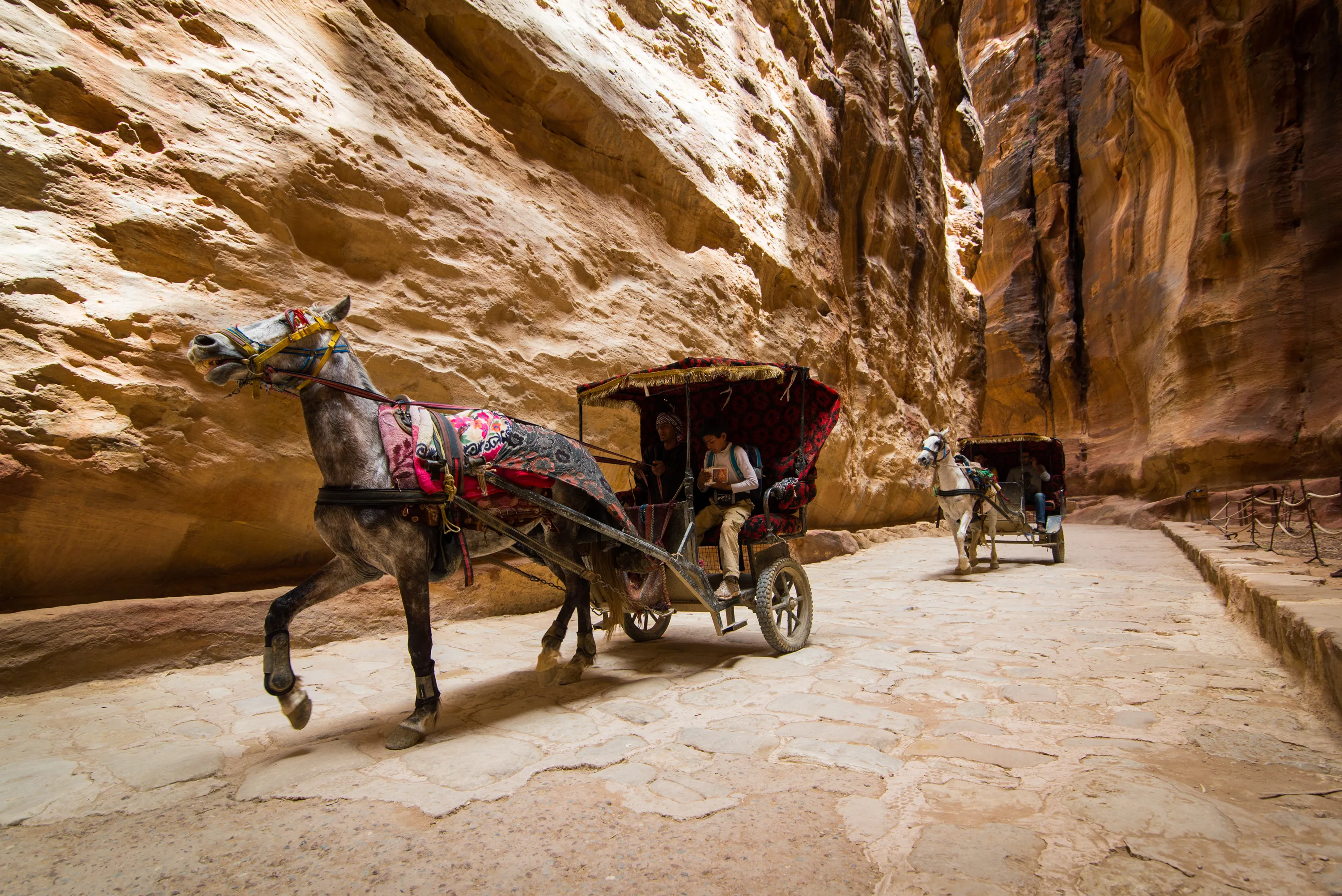 “A race to the treasure: horses are pulling excited tourists and workers to the bottom of the Siq, the main entrance to the ancient city of Petra in southern Jordan, where the famous Treasury is carved into the rock face”. (Photo by James Bridle/Guardian Witness)