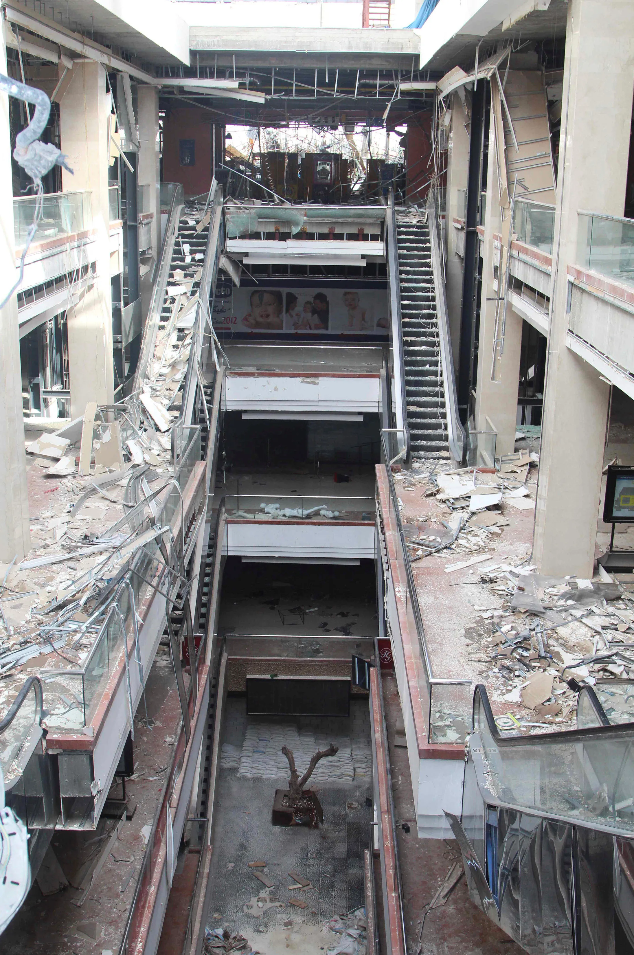 A general view shows damage inside Shahba Mall, one of the largest commercial shopping centres in Syria, that was targeted by what activists said were air strikes by forces loyal to Syria's President Bashar al-Assad in northern Aleppo countryside October 16, 2014. (Photo by Abdalrhman Ismail/Reuters)