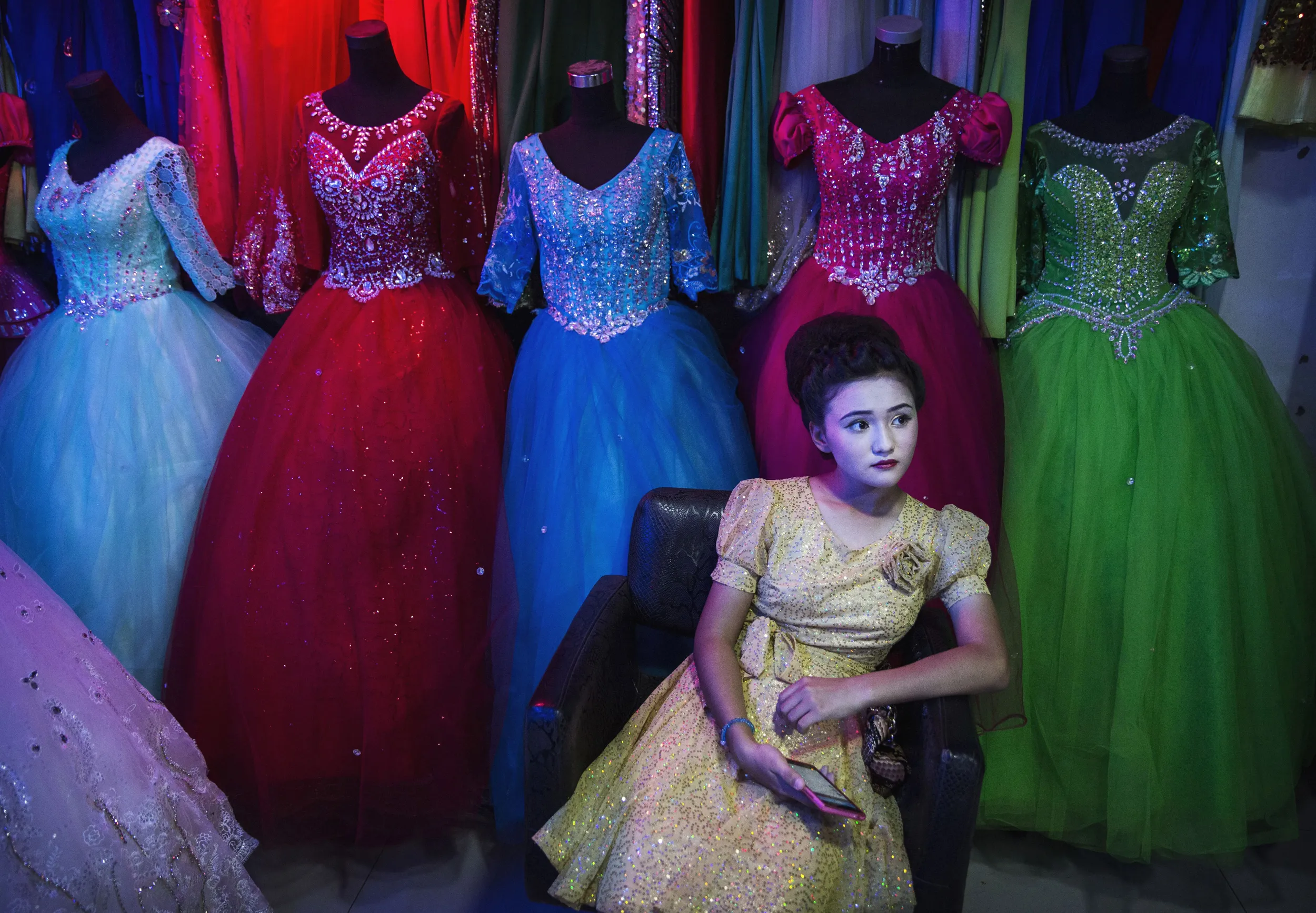 An ethnic Uyghur girl waits in a beauty salon to have her hair done before the Corban festival on September 8, 2016 in Turpan County, in the far western Xinjiang province, China. The Corban festival, known to Muslims worldwide as Eid al-Adha or “feast of the sacrifice”, is celebrated by ethnic Uyghurs across Xinjiang, the far-western region of China bordering Central Asia that is home to roughly half of the country's 23 million Muslims. The festival, considered the most important of the year, involves religious rites and visits to the graves of relatives, as well as sharing meals with family. Although Islam is a 'recognized' religion in the constitution of officially atheist China, ethnic Uyghurs are subjected to restrictions on religious and cultural practices that are imposed by China's Communist Party. Ethnic tensions have fueled violence that Chinese authorities point to as justification for the restrictions. (Photo by Kevin Frayer/Getty Images)