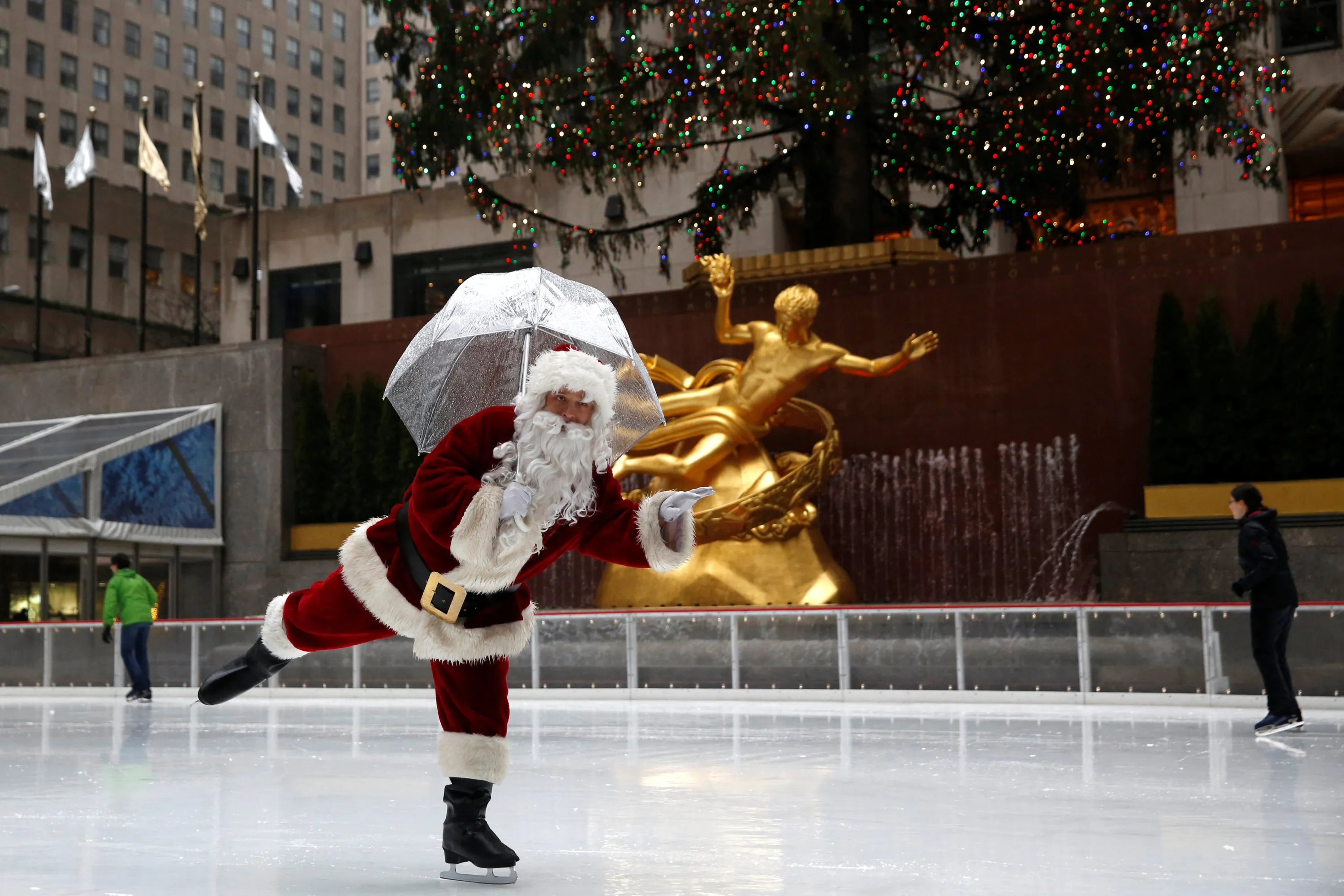 A man dressed as Santa Claus ice skates at The Rink At Rockefeller Center on Christmas Eve in Manhattan, New York City, U.S., December 24, 2016. (Photo by Andrew Kelly/Reuters)