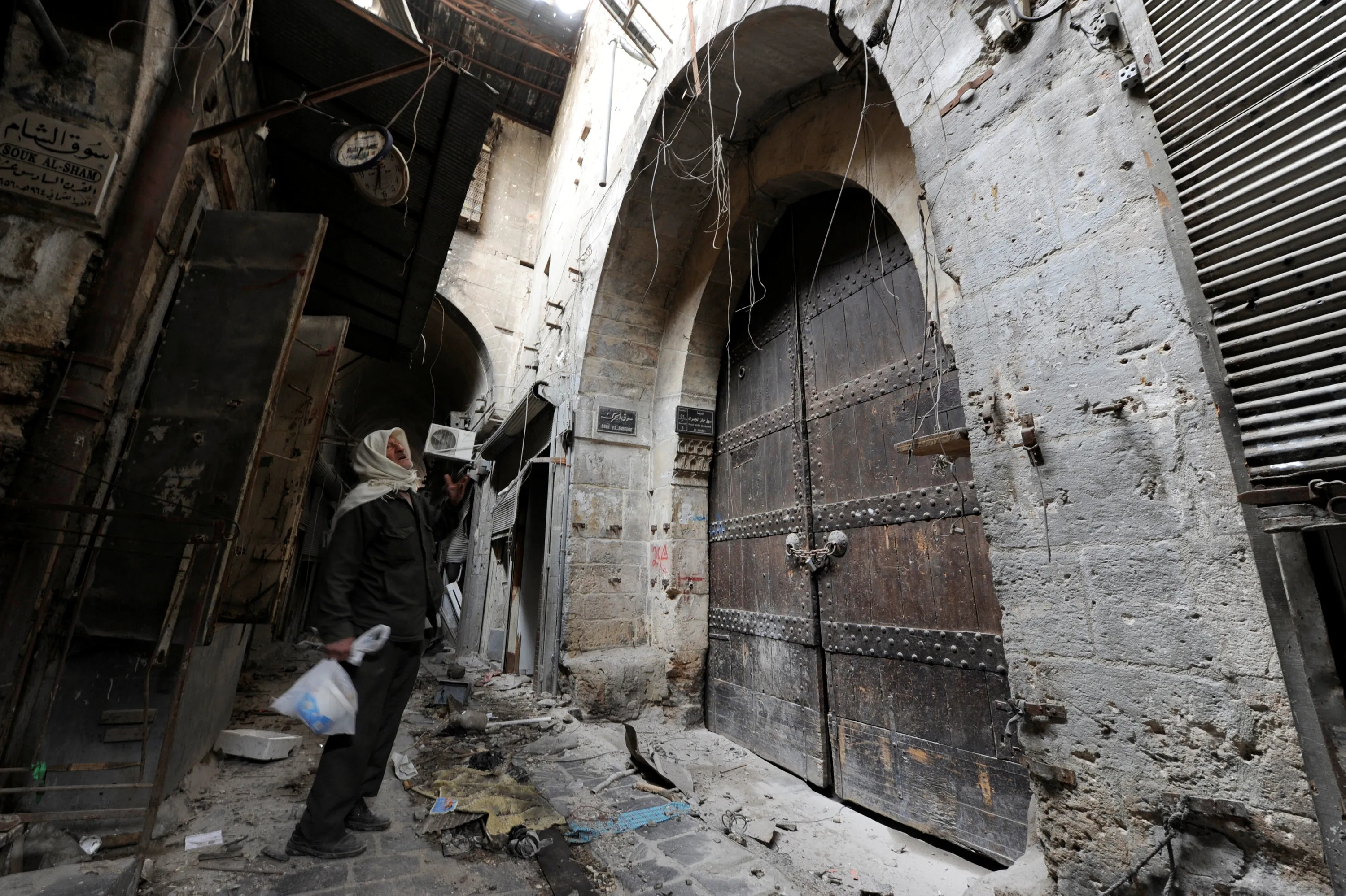 A man reacts at Khan al-Jumruk entrance in the government controlled Old City of Aleppo, Syria December 17, 2016. (Photo by Omar Sanadiki/Reuters)