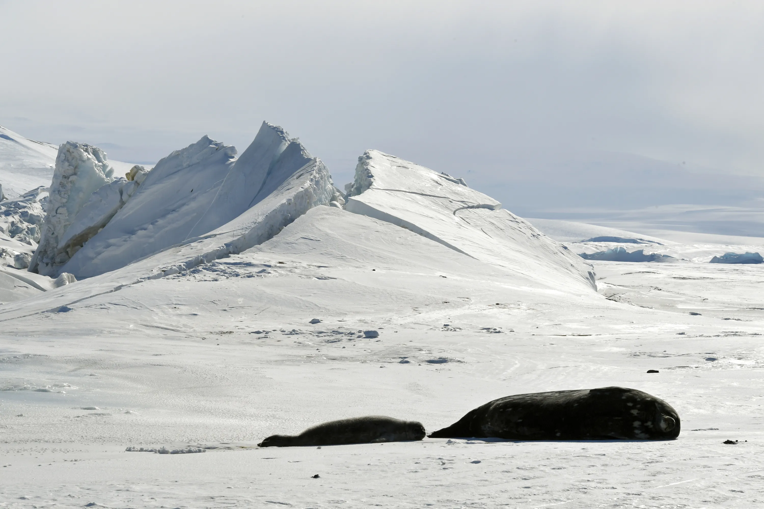 ANTARCTICA: Seals lie on a frozen section of the Ross Sea at the Scott Base in Antarctica on November 12, 2016.. (Photo by Mark Ralston/Reuters)