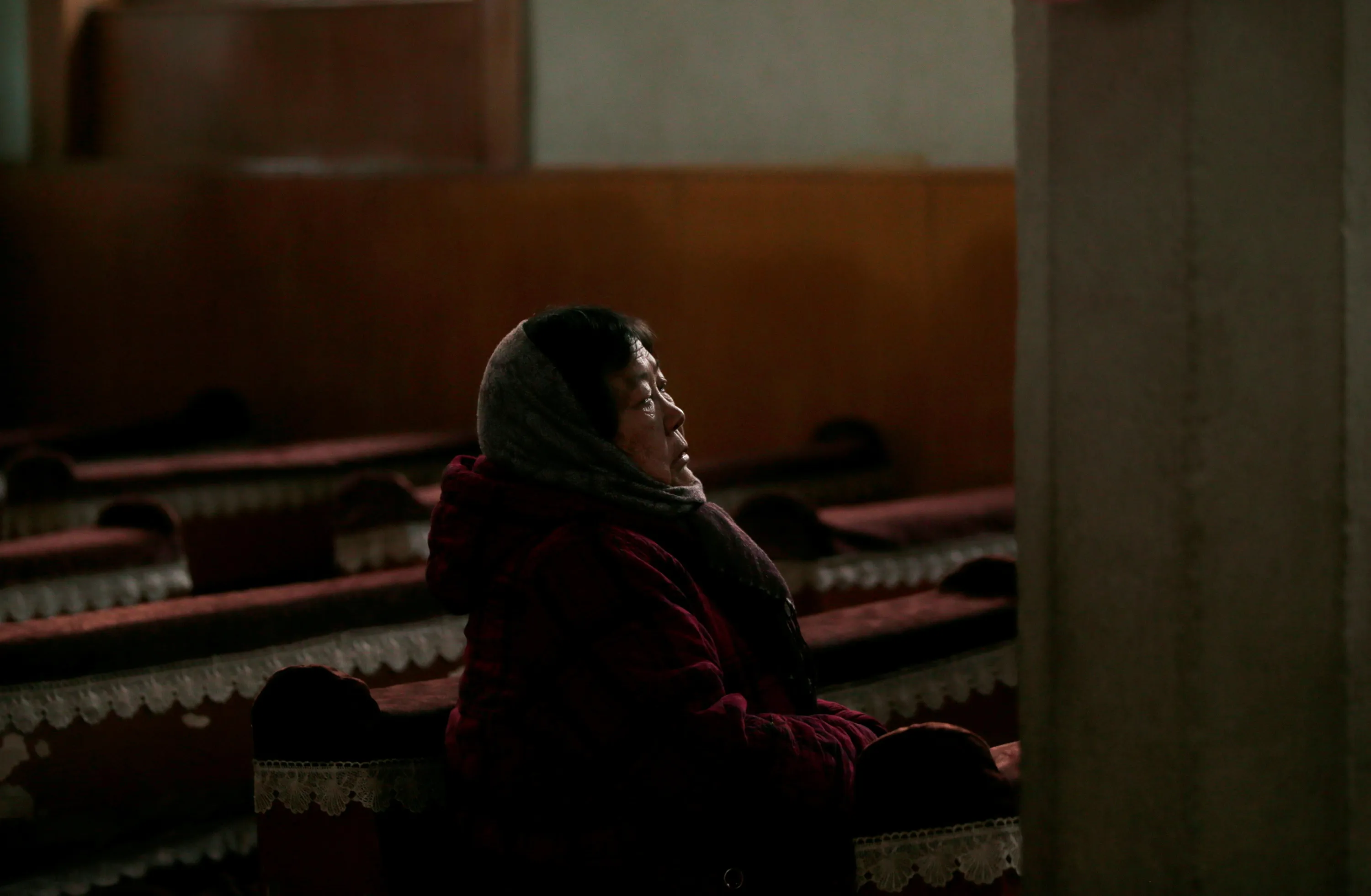 72-year-old villager Zha Shuzhen prays at a Catholic church on the outskirts of Taiyuan, North China's Shanxi province, December 23, 2016. (Photo by Jason Lee/Reuters)
