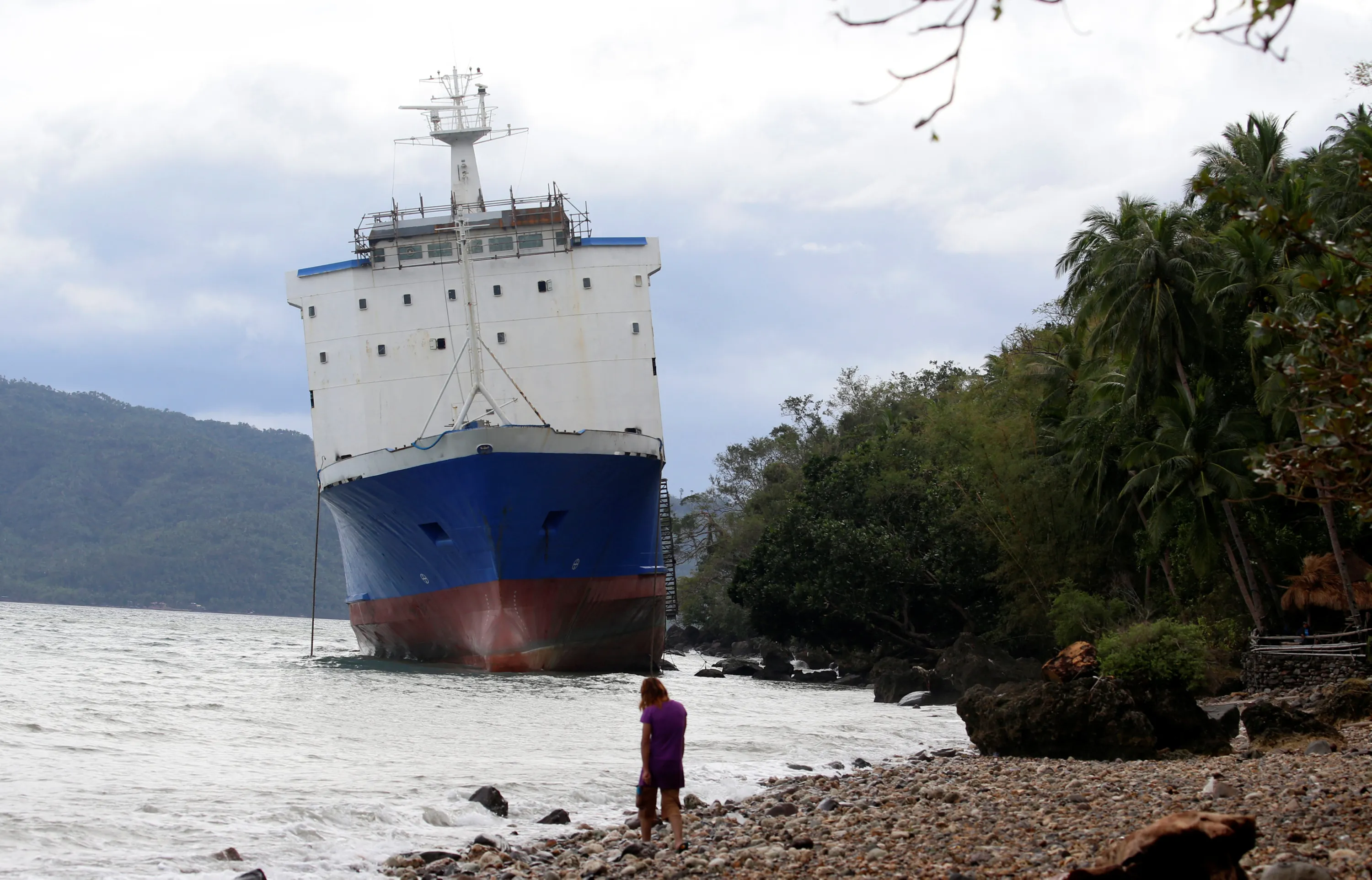 A resident walks near a passenger inter-island ferry Shuttle RoRo 5 that was swept ashore at the height of Typhoon Nock-Ten in Mabini, Batangas in the Philippines December 26, 2016. (Photo by Erik De Castro/Reuters)