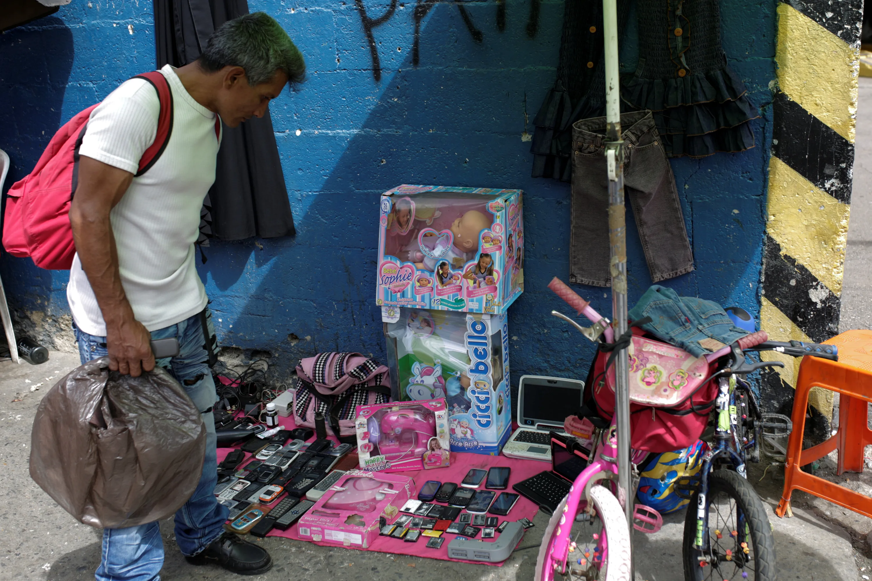 A man looks at second-hand toys at a street market in the slum of Catia in Caracas, Venezuela December 21, 2016. (Photo by Marco Bello/Reuters)