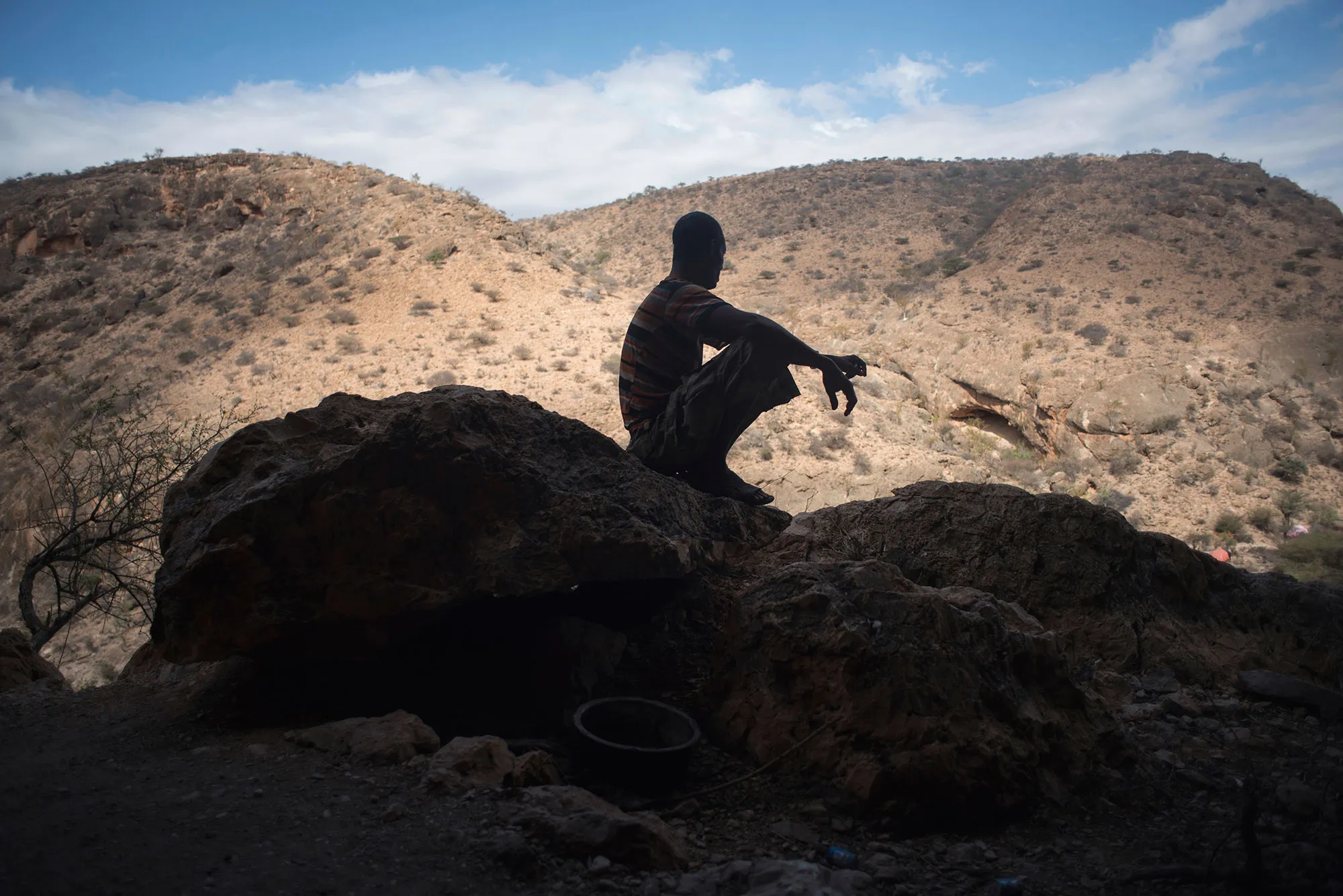 Frankincense tapper Musse Ismail Hassan rests in a cave in a canyon near Gudmo, Somaliland, a breakaway region of Somalia on August 3, 2016. (Photo by Jason Patinkin/AP Photo)