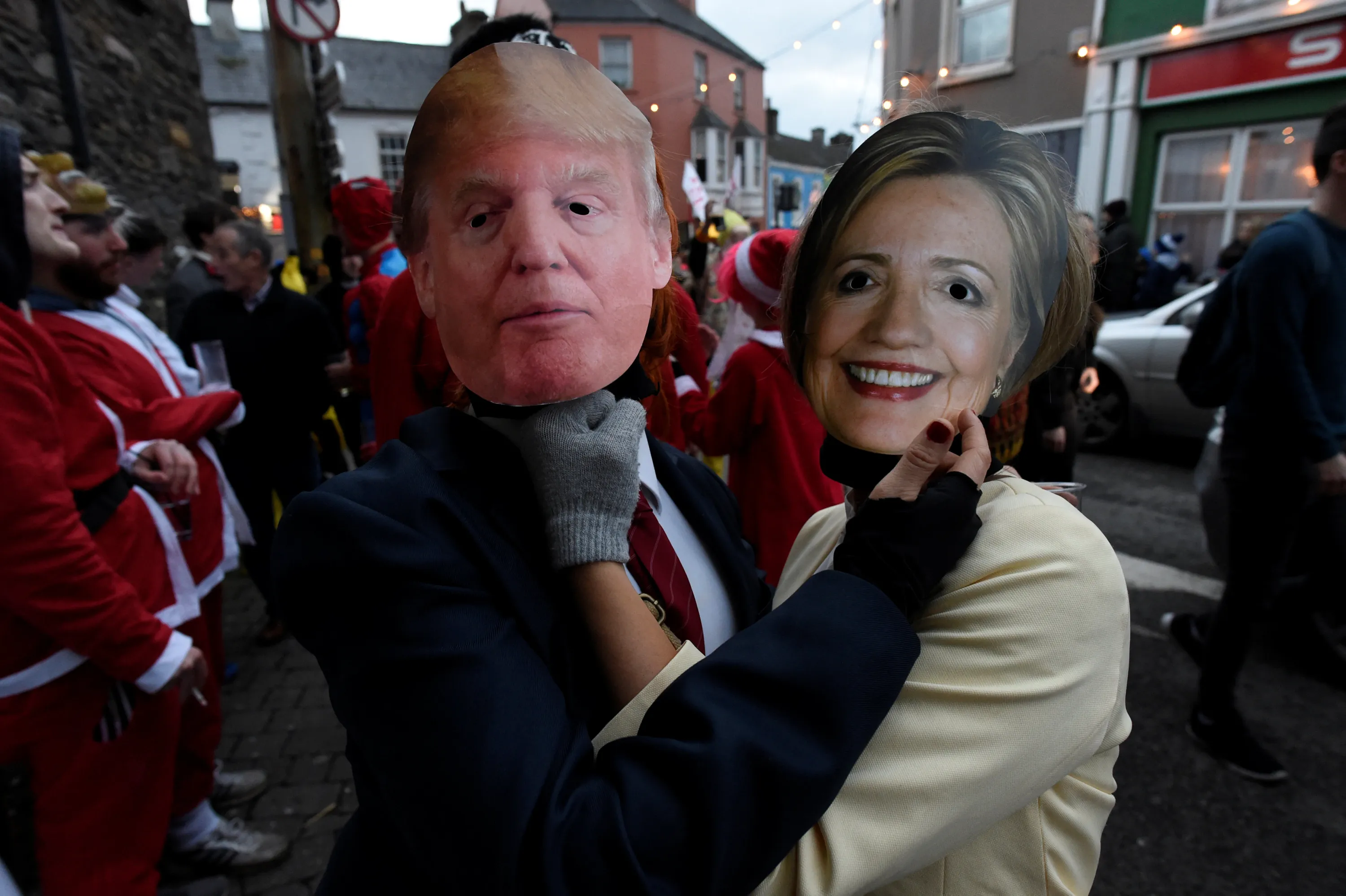 People costumed as Donald Trump and Hillary Clinton are seen during an Irish tradition of Hunting of the Wren festival held every St. Stephen's Day in Dingle, Ireland December 26, 2016. (Photo by Clodagh Kilcoyne/Reuters)