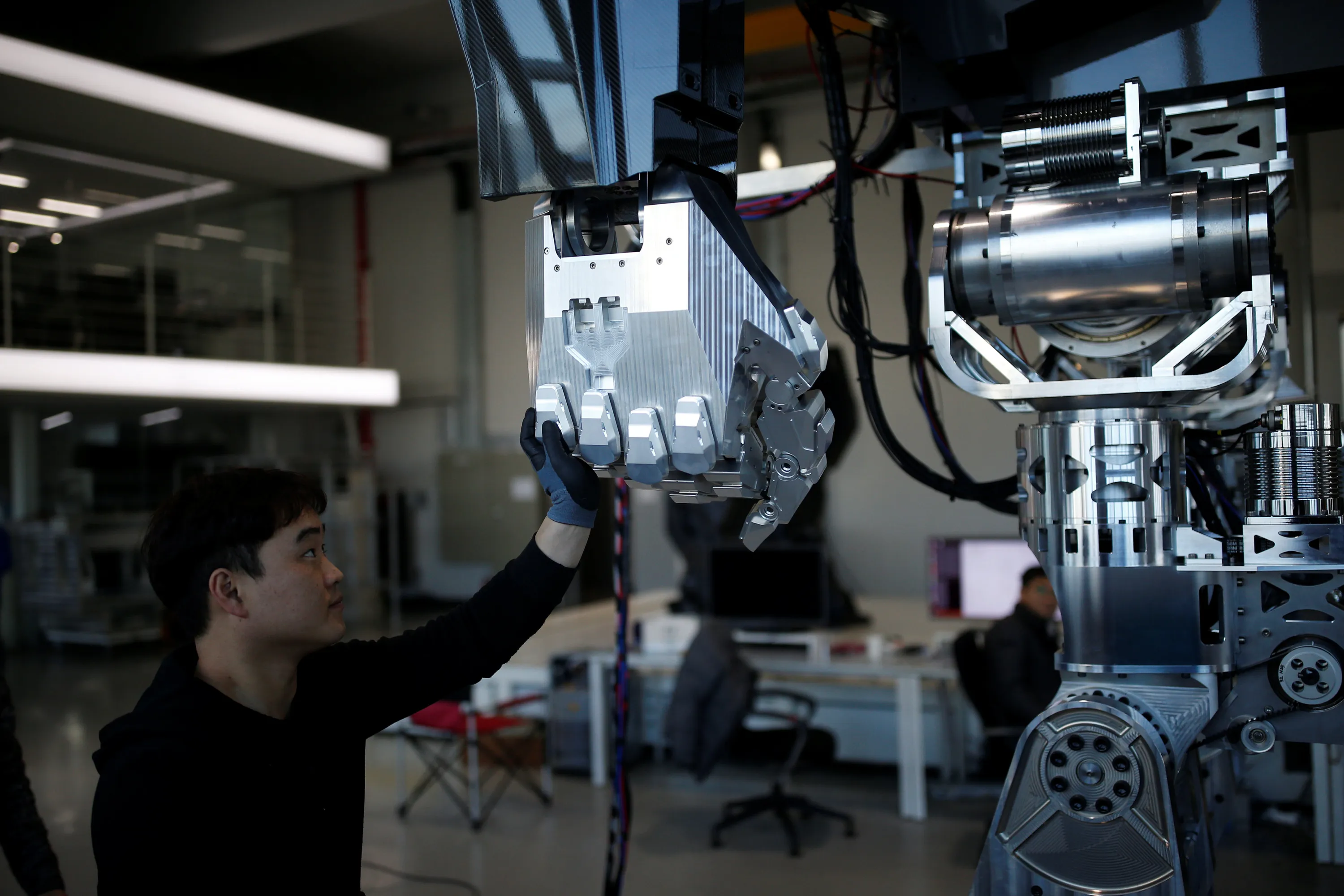Employees check a manned biped walking robot “METHOD-2” during a demonstration in Gunpo, South Korea, December 27, 2016. (Photo by Kim Hong-Ji/Reuters)
