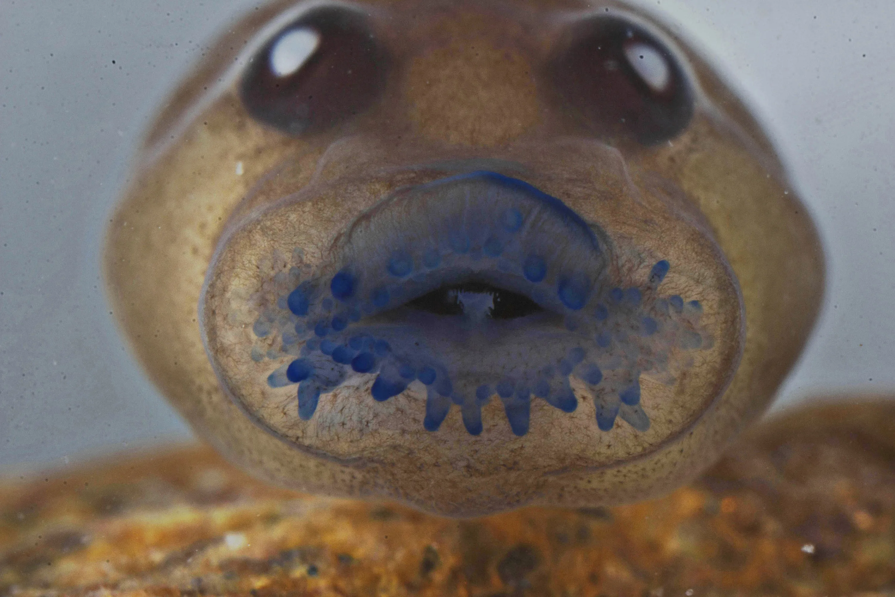 A tadpole of a frog, Frankixalus jerdonii, belonging to a newly found genus of frogs, seen under a microscope in Systematics Lab at the University of Delhi, Department of Environmental Studies, in New Delhi on January 14, 2016. Scientists have discovered the new genus of tree frogs in India thought to have been extinct for over a century. (Photo by S.D. Biju/AP Photo)
