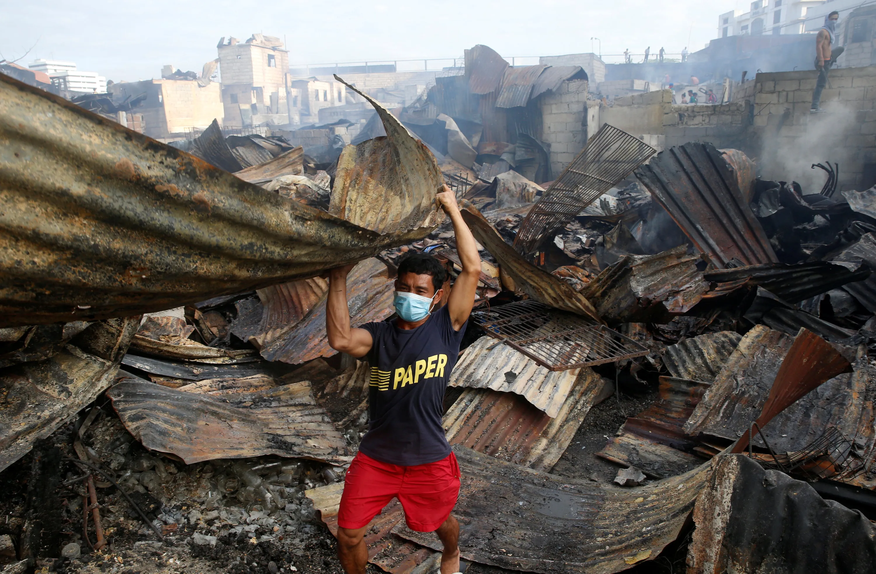 A fire victim collects recyclable materials from the ruins of his house after a fire razed a squatter colony, in Quezon city, Metro Manila in the Philippines December 28, 2016. (Photo by Erik De Castro/Reuters)