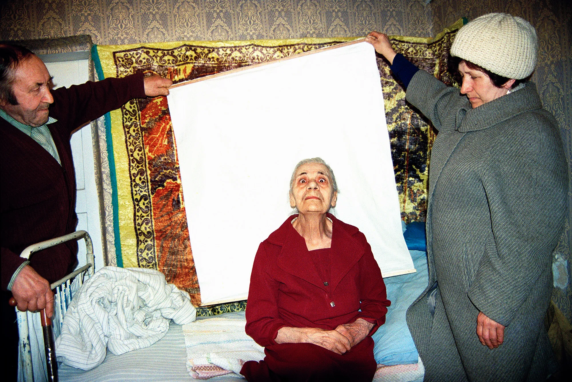 He was provided with black and white film, and would photograph as many as 60 people a day, against a portable white backdrop. But he also carried a wide-angle camera with expensive C-41 colour film, and took his own photo portraits. (Photo by Alexander Chekmenev/The Guardian)