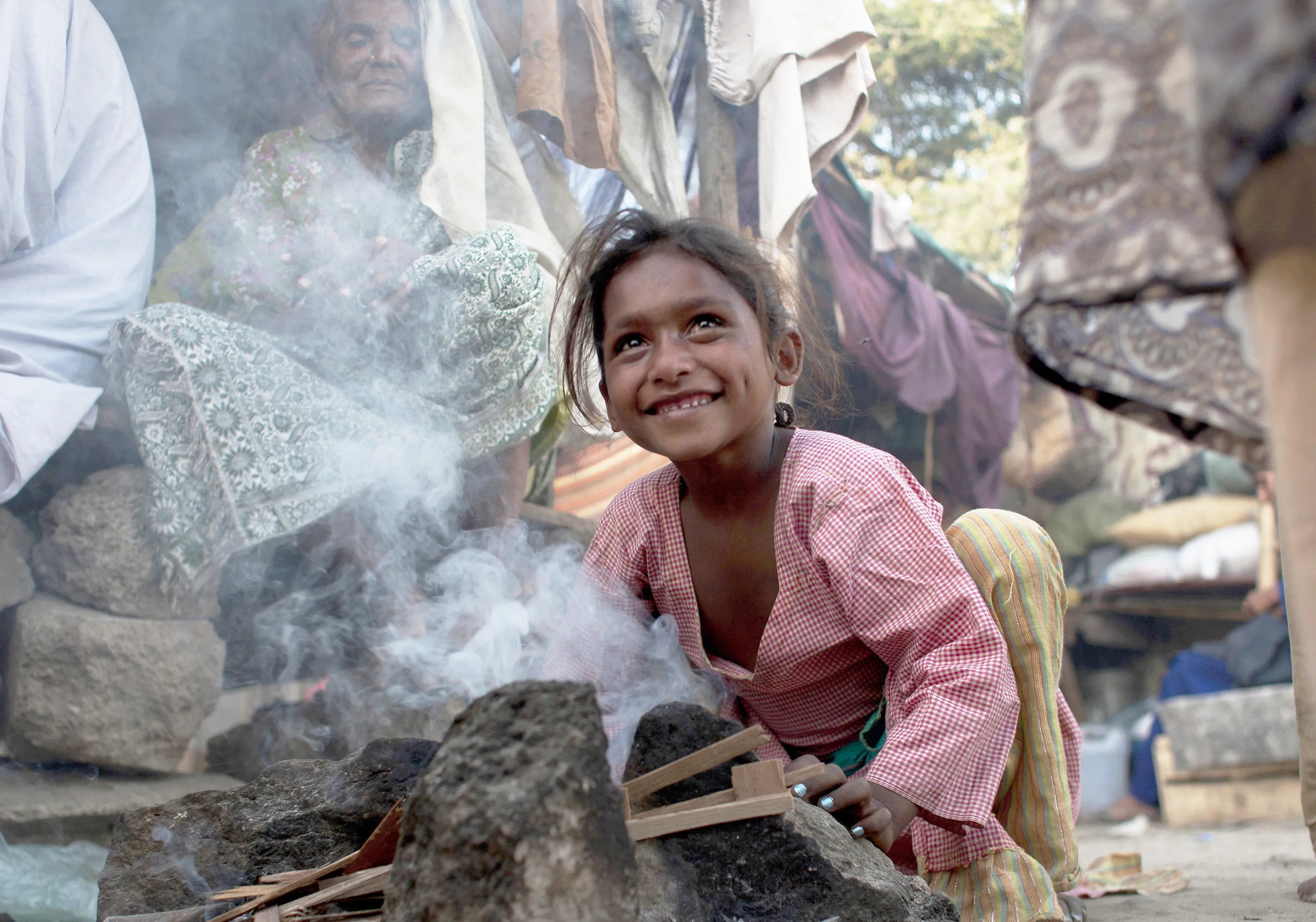 A Pakistan girl tries to light fire on a makeshift stove for cooking outside her shanty home in Karachi, Pakistan, February 12, 2015. (Photo by Shakil Adil/AP Photo)