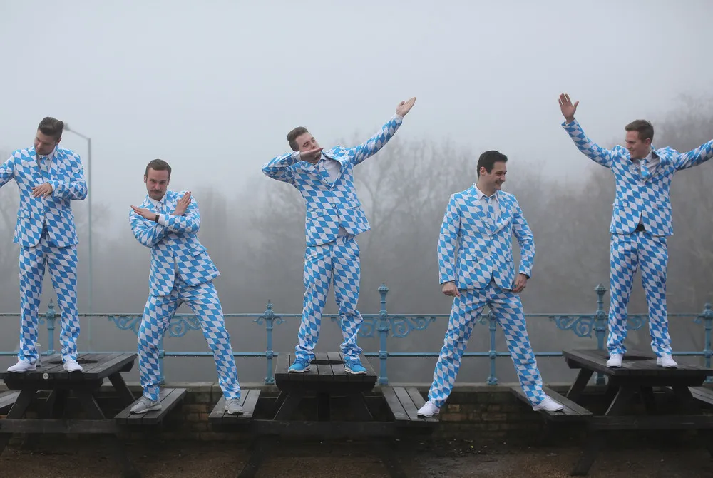 Bavarian darts fans pose outside Alexandra Palace ahead of the quarter finals of the 2016 William Hill World Darts Championship on December 30, 2016 in London, England. The event is the world's biggest darts tournament, with 72 players from across the globe competing across 15 days of the knock out competition. (Photo by Dan Kitwood/Getty Images)