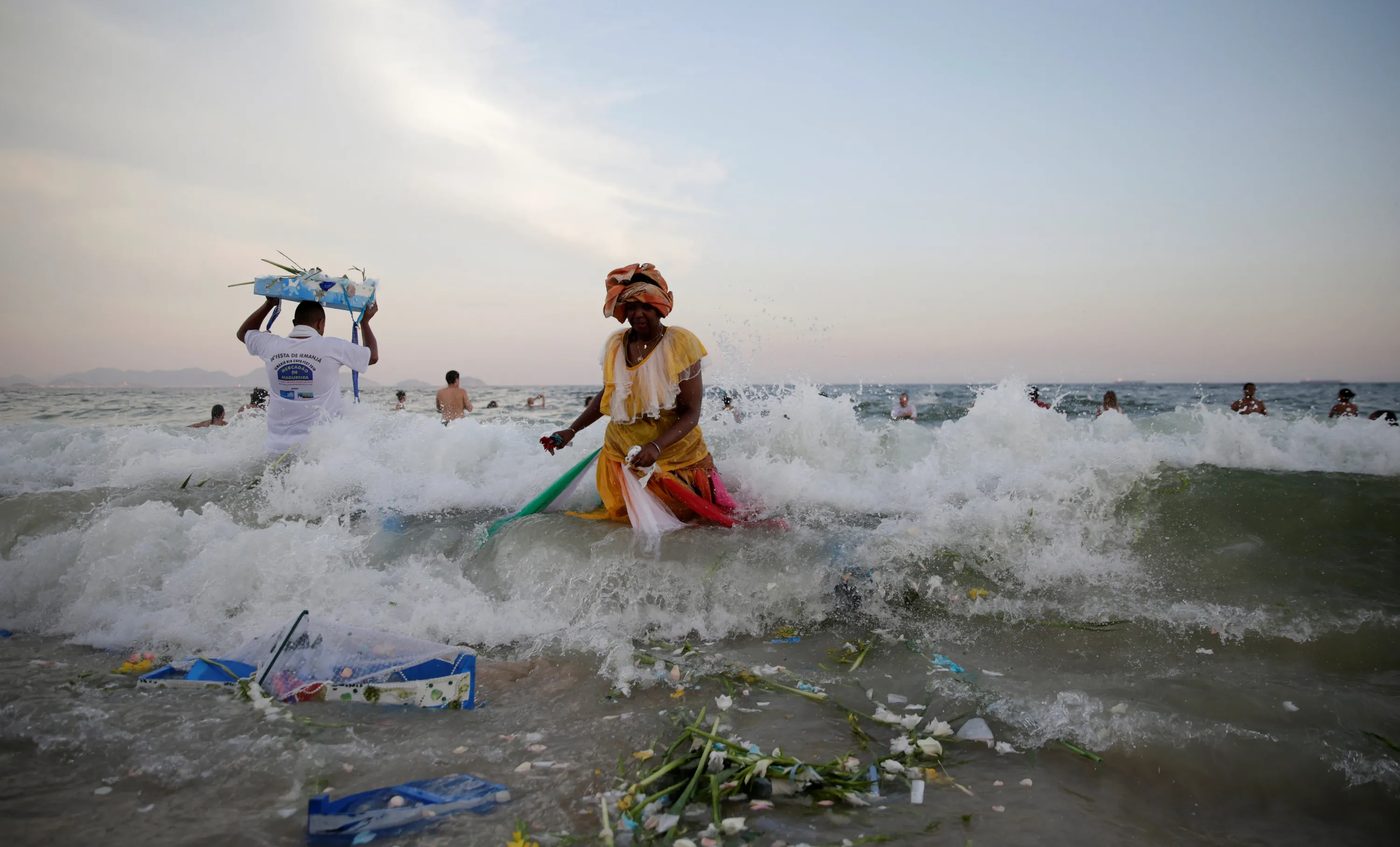 Followers of the Afro-Brazilian religion Umbanda pay tribute for Iemanja, goddess of the sea, in Copacabana Beach in Rio de Janeiro, Brazil December 29, 2016. (Photo by Ricardo Moraes/Reuters)