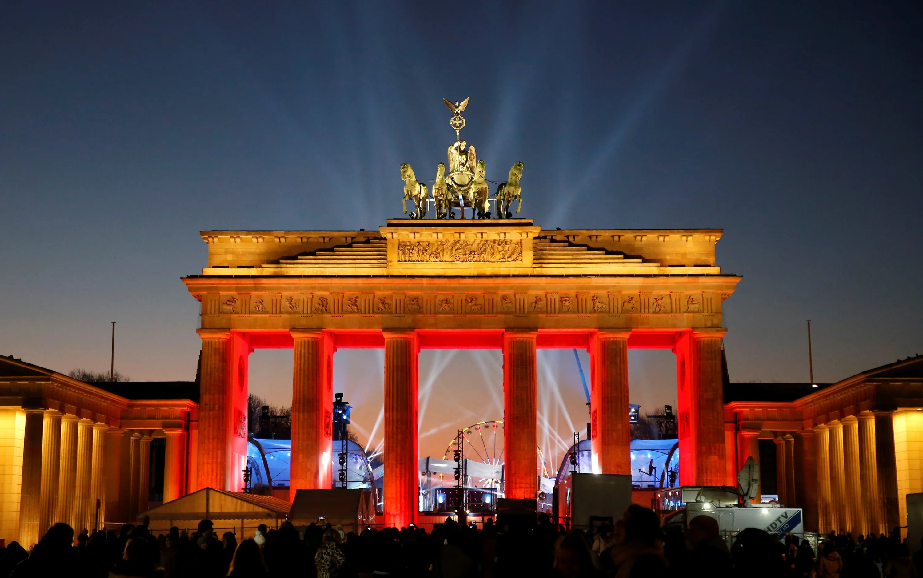 Visitors watch the sound and light check at the Brandenburg Gate, ahead of the upcoming New Year's Eve celebrations in Berlin, Germany, December 30, 2016. (Photo by Fabrizio Bensch/Reuters)