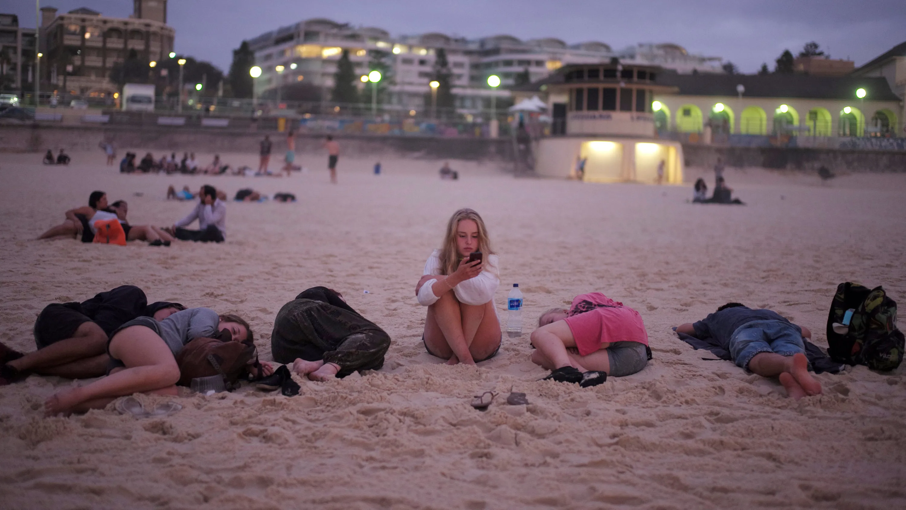 A girl waits for her friends to wake up after a night of New Year's Eve partying on Sydney's Bondi Beach before welcoming the first sunrise of 2017 in Australia's largest city, January 1, 2017. (Photo by Jason Reed/Reuters)