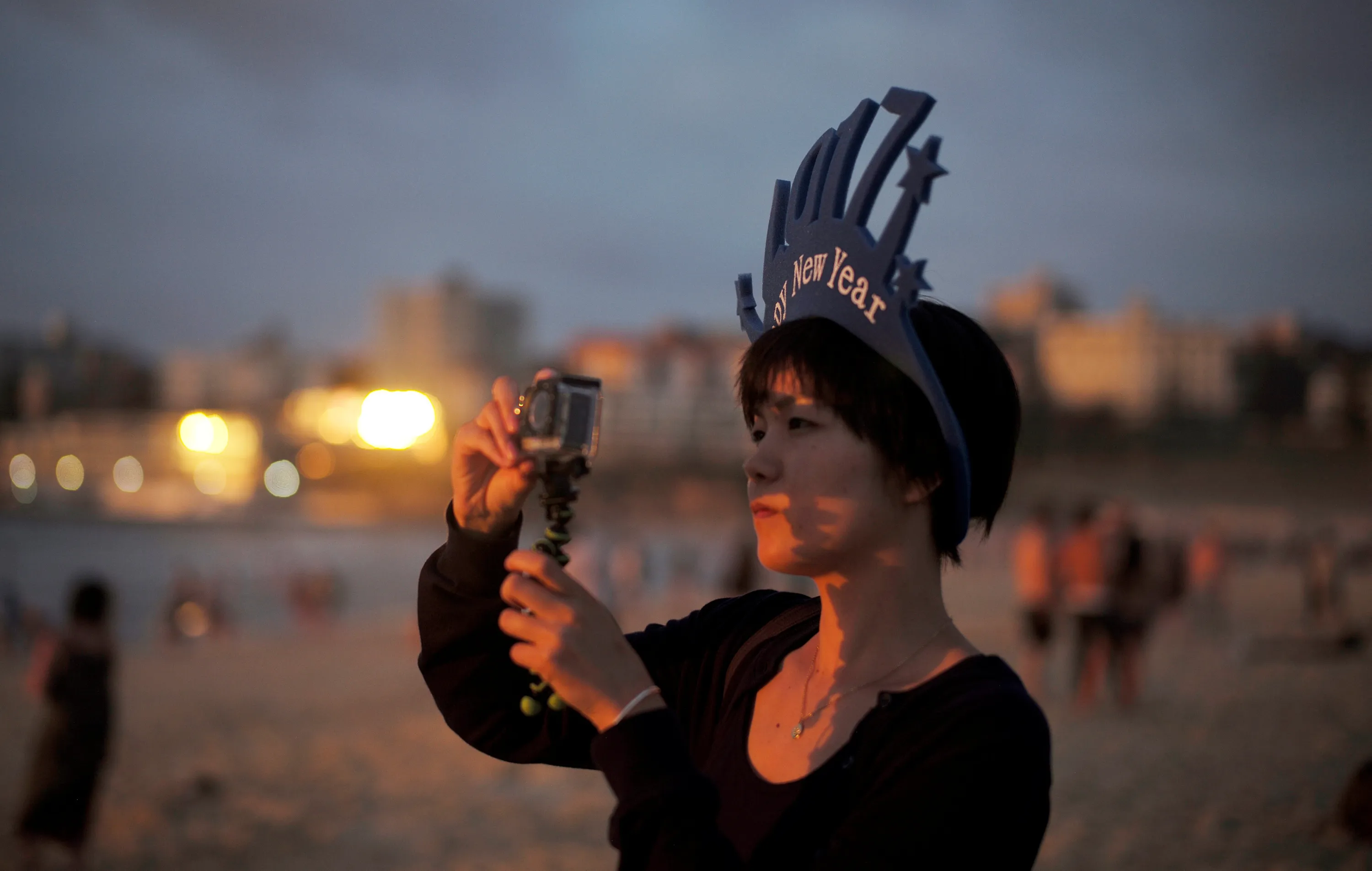 A woman wearing a 2017 hat shoots a video of the first sunrise of 2017 at Bondi Beach following new year celebrations in Australia's largest city, January 1, 2017. (Photo by Jason Reed/Reuters)