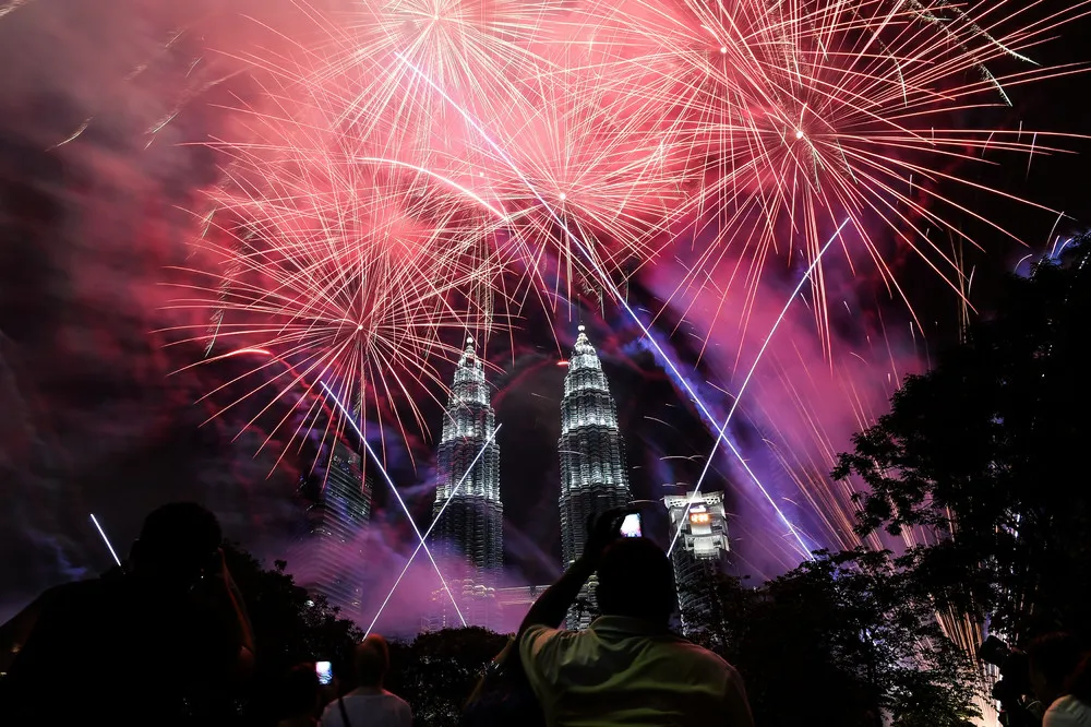 Fireworks illuminate the sky near Malaysia' s landmark Petronas Twin Towers during the New Year celebrations in Kuala Lumpur on January 1, 2017. (Photo by Mohd Rasfan/AFP Photo)