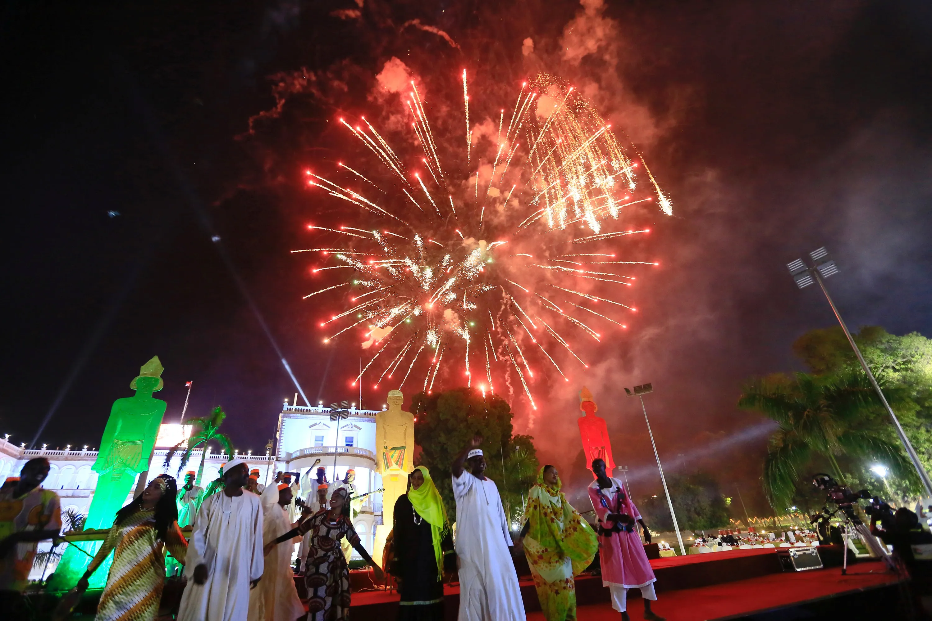 Fireworks are seen behind traditional performers after Sudan's President Omar Al Bashir addressed the nation during the country's 61st independence day, at the presidential palace in Khartoum, Sudan December 31, 2016. (Photo by Mohamed Nureldin Abdallah/Reuters)