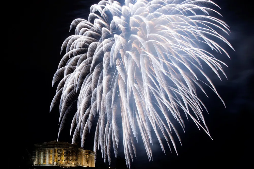 Fireworks explode over the ancient Parthenon temple atop Acropolis hill during New Year's day celebrations in Athens, Greece, January 1, 2017. (Photo by Alkis Konstantinidis/Reuters)