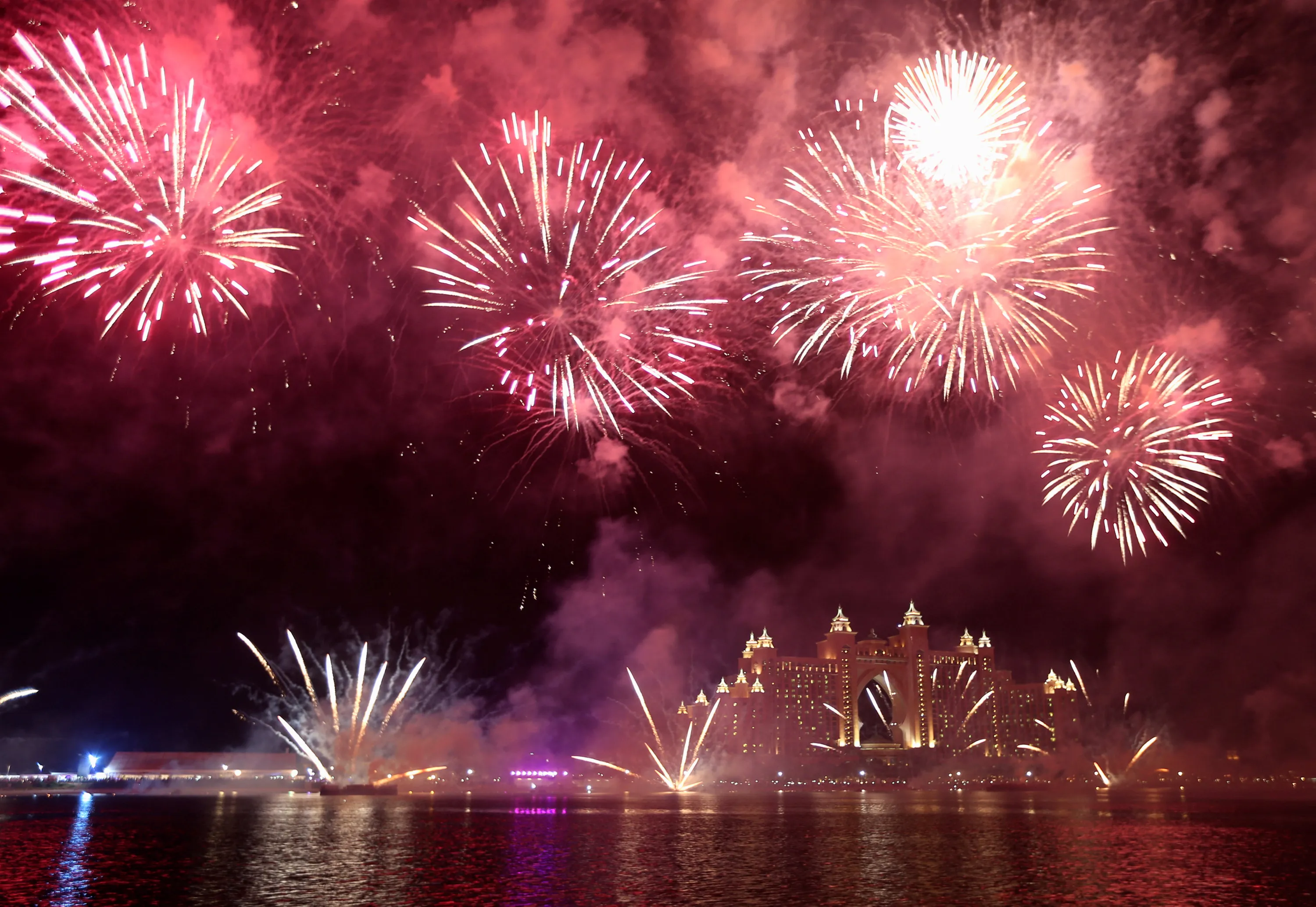 Fireworks explode over the Atlantis hotel in Dubai during the New Year celebrations, UAE, January 1, 2017. (Photo by Reuters/Stringer)