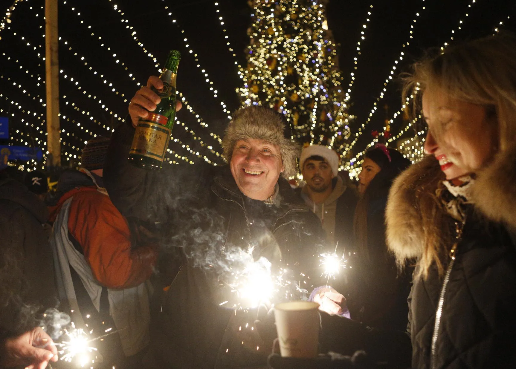 People celebrate the New Year at Sophia Square near the St. Sophia Cathedral in Kiev, Ukraine, Sunday, January 1, 2017. (Photo by v/AP Photo)