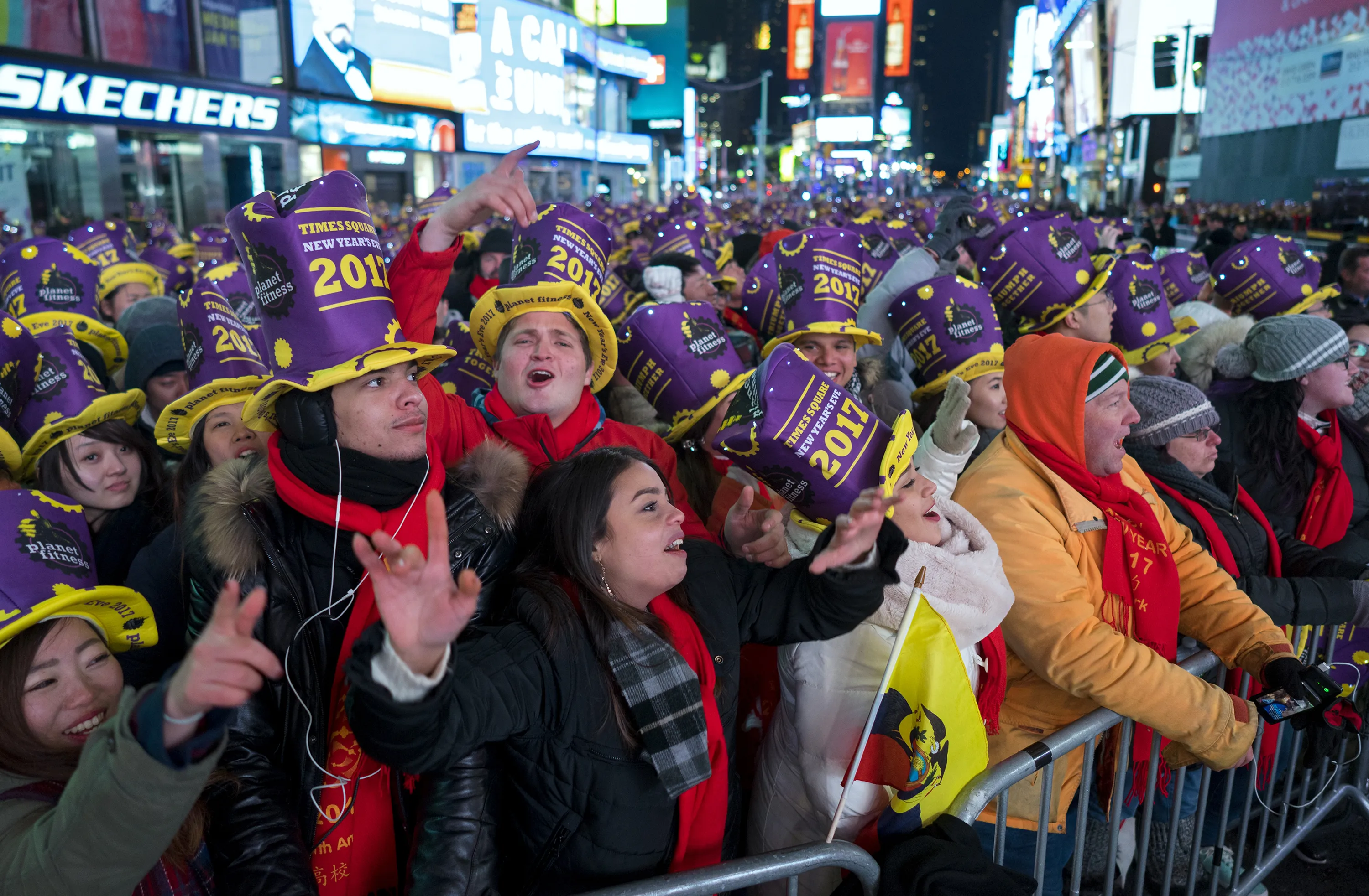 Revelers cheer for a musical act in New York's Times Square during New Year's Eve celebrations on Saturday, December 31, 2016. (Photo by Craig Ruttle/AP Photo)