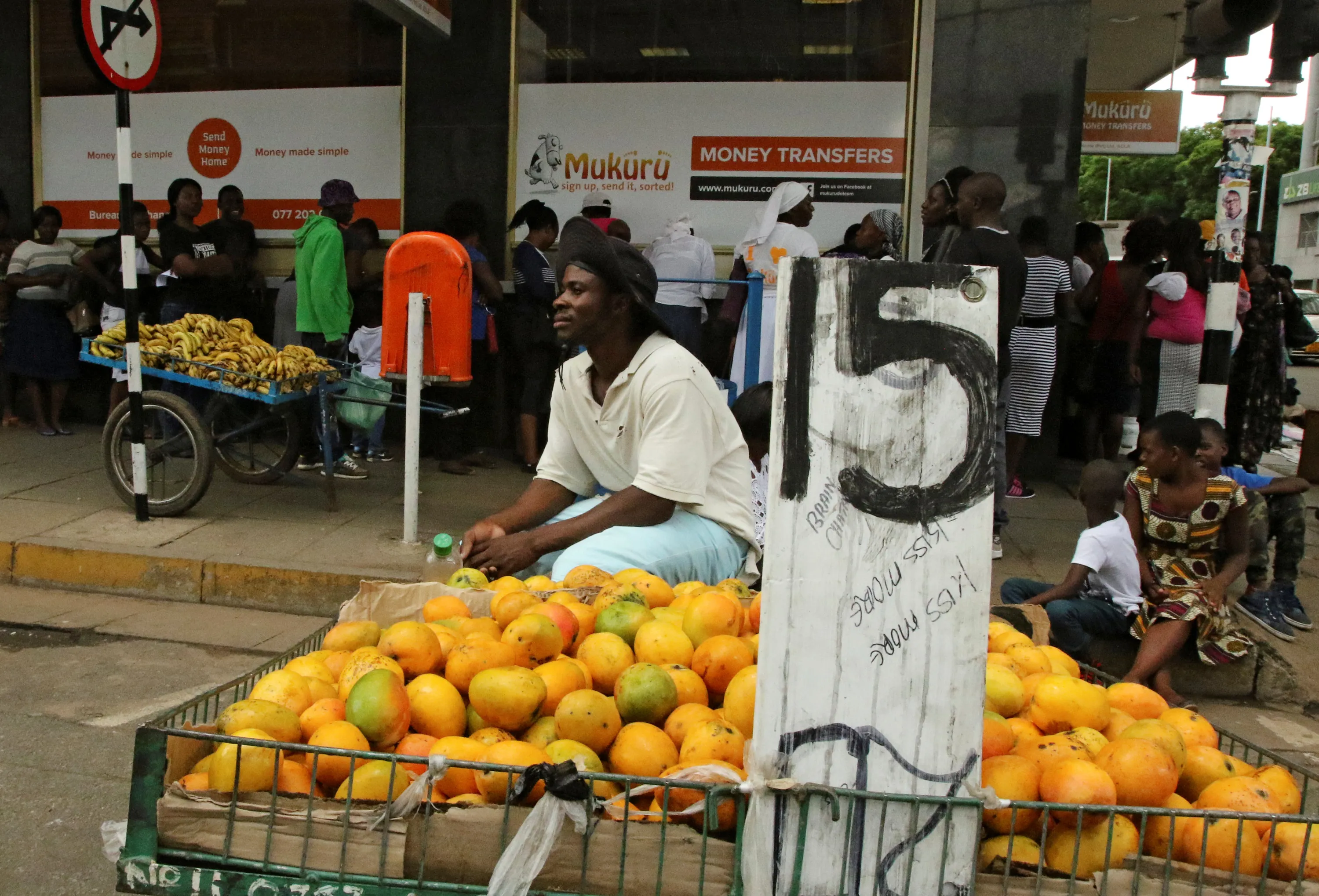 A fruit vendor waits to sell his goods outside a bank in central Harare, Zimbabwe December 19, 2016. (Photo by Philimon Bulawayo/Reuters)